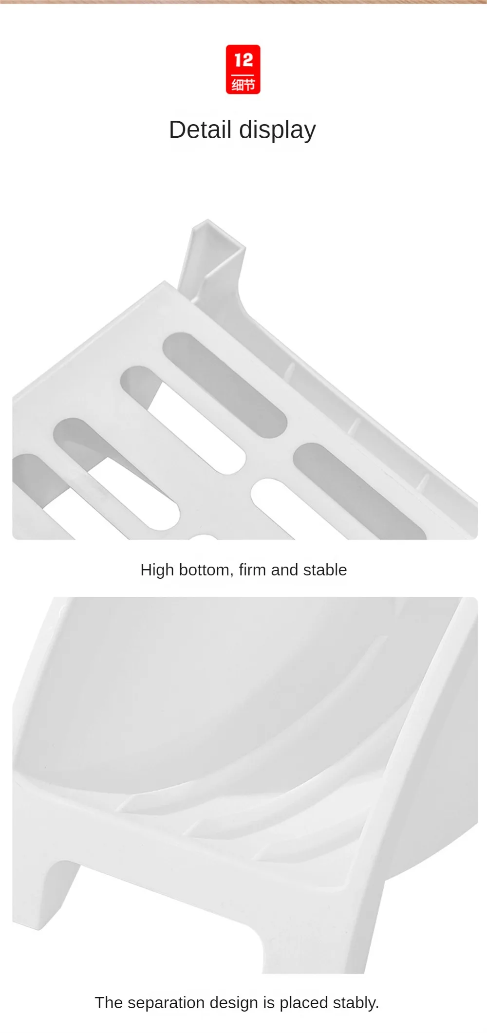 5. Design vuoto asciugatura più veloce: Lo scaffale della cucina adotta il design cavo a strisce orizzontali per aumentare l'area di drenaggio e accelerare la velocità di drenaggio, consentendo un maggiore flusso d'aria per mantenere gli strumenti di pulizia ; Goditi i controsoffitti da cucina puliti e ordinati.