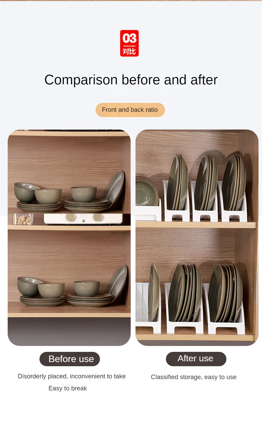 Questo prodotto è un supporto di stoccaggio per piatti e ciotole in cucina. È progettato per essere ventilato e consente il drenaggio, Aiutare a mantenere i piatti asciutti e puliti. Il rack Organizer può essere utilizzato per contenere più piatti e ciotole, rendendolo un'opzione conveniente per conservare i piatti in cucina. Il suo design compatto aiuta a risparmiare spazio e mantenere la cucina organizzata. Questo scaffale di stoccaggio dei piatti è una soluzione pratica ed efficiente per mantenere le piastre e le ciotole facilmente accessibili, promuovendo al contempo l'essiccazione rapida e la prevenzione dell'accumulo di umidità.