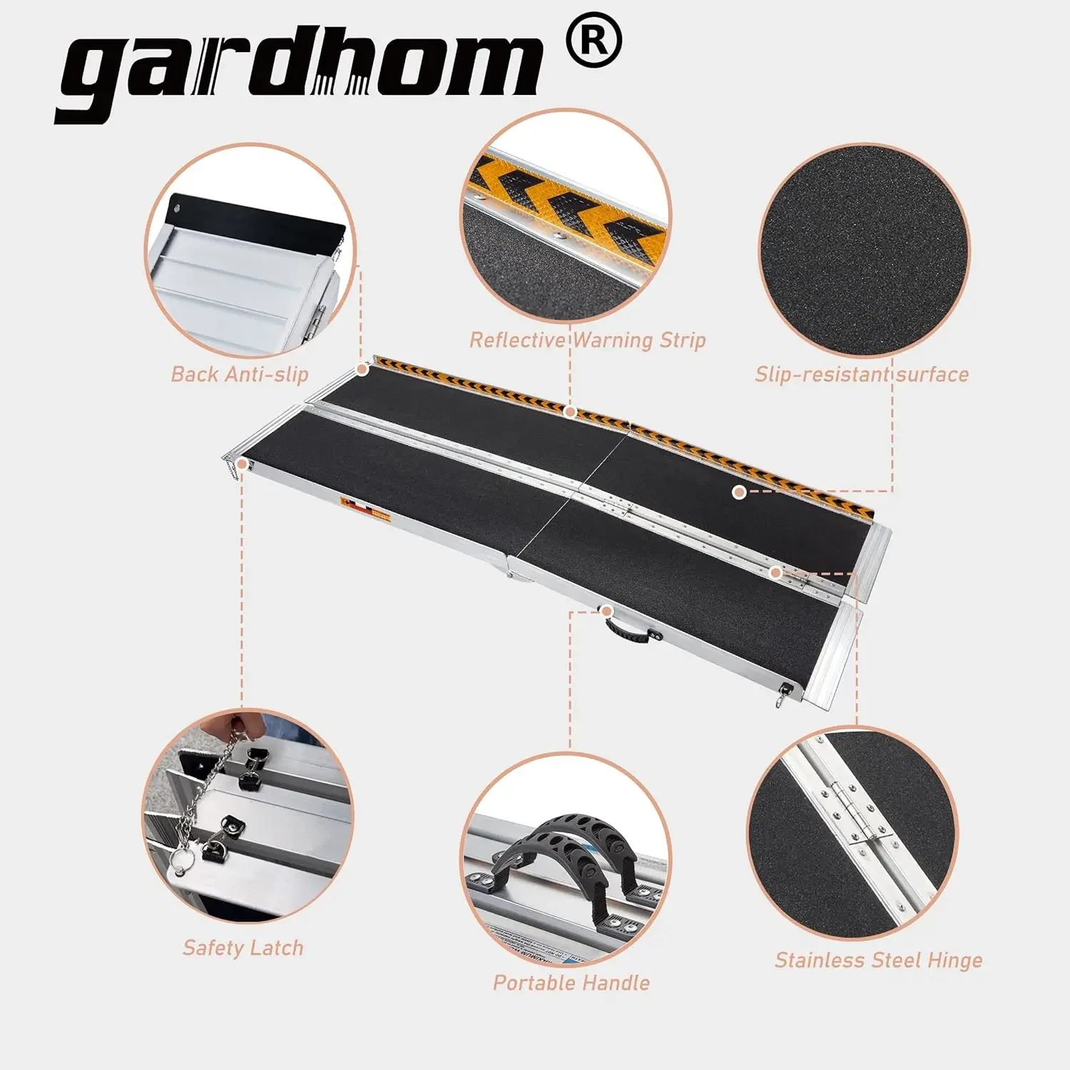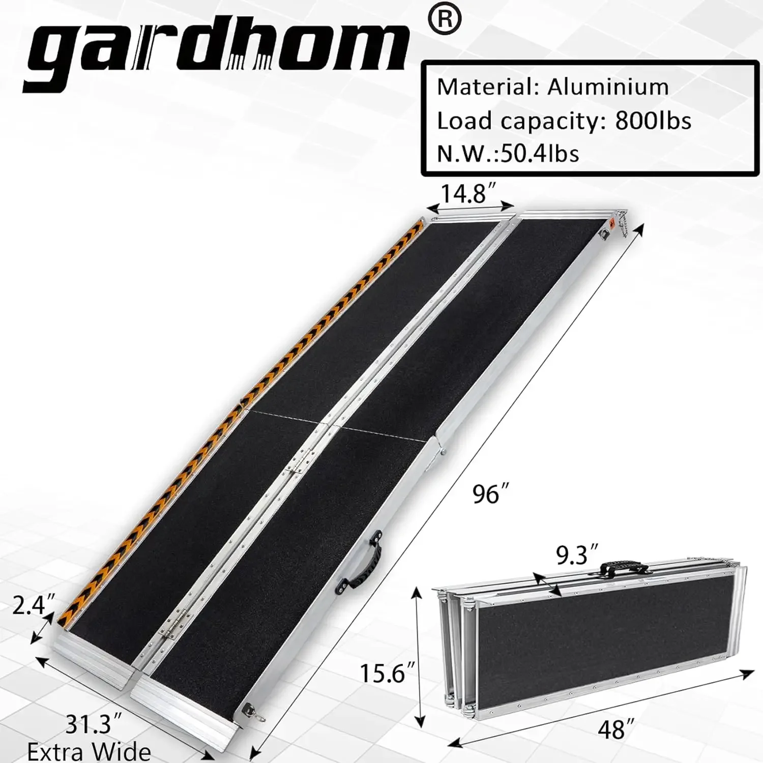 Rampa portatile 8ft, gardhom Foldable 8’L x 31.3″ W Wheelchair Ramp Folding Handicap Ramp for Home Entry Threshold Doorways Steps Stairs Curbs Vehicle Scooter SUV