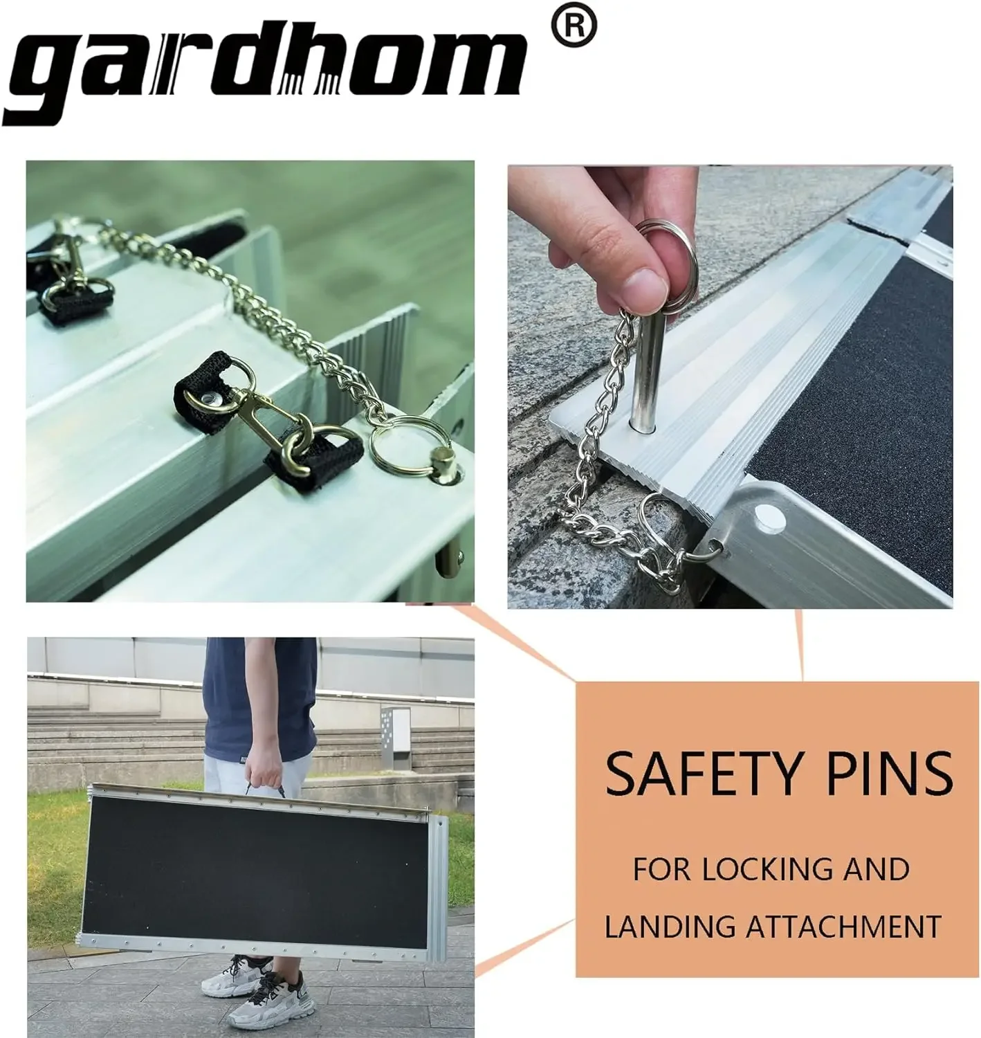 - STRONG AND ANTI-SLIP: The threshold ramps for doorways is made of high quality aluminum material, which is very durable and sturdy; the anti-slip surface with black frosted anti-slip layer can provide a certain degree of friction, e allo stesso tempo, the safety pins can be used for locking and landing fixation, which makes the process of using it more stable and safe.