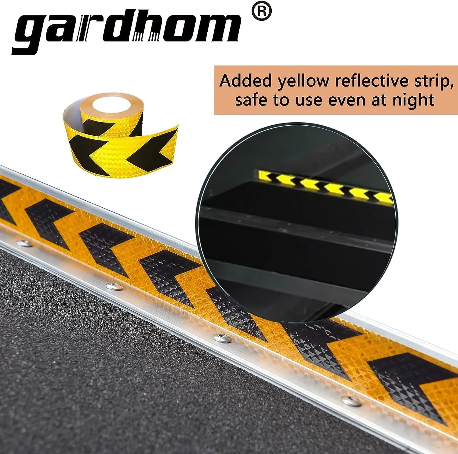 - NEW UPGRADE: ①Bottom transition plate makes the portable ramps for steps fit the ground better and provides maximum support and stability.②Top transition plate adopts a rubber anti-skid pad, ensuring the safe use of the handicap ramp.③Added yellow reflective strip, safe to use even at night.