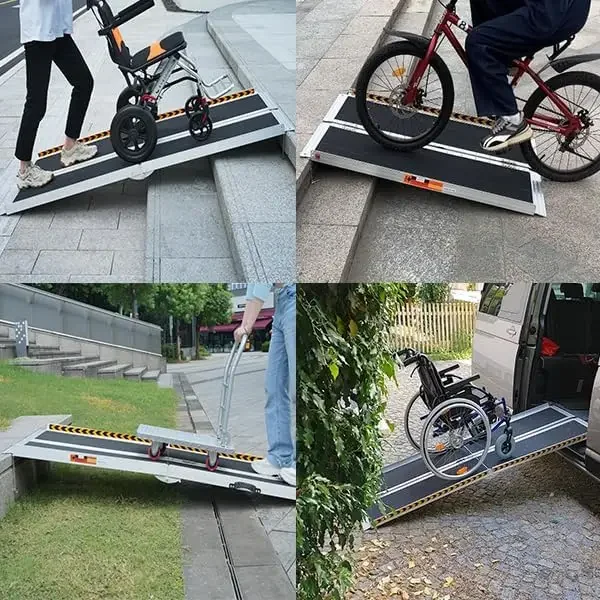 - RAMPS FOR SCOOTERS, WALKERS AND WHEELCHAIRS: Portable wheelchair ramp can be used in front of the home, auto, curb, eccetera. to solve the daily mobility problems of wheelchairs, passeggini,, biciclette, mobility scooters and more. Provide accessibility for your family to get around with ease.