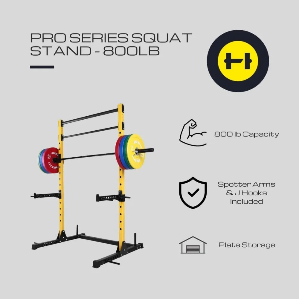 - What’s Inside – (1) Pro Series Squat Stand, (2) J Hooks, (2) Barre per trazioni, (2) Weight Plate Holders, E (4) Resistance Band Pegs. Includes instructions and hardware.