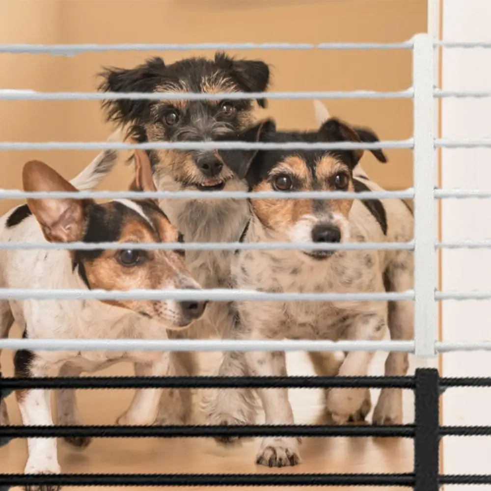 3.Useful and Functional: Our metal pet gate ensures convenient entry and exit for people and is widely used in living rooms, stanze, cucine, and bathrooms for small or medium-sized dogs. Its unique stackable function provides flexibility in height adjustment.