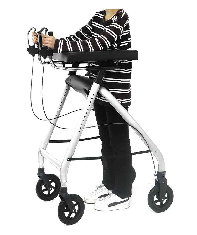 Outdoor Medical Rehabilitation Aluminum Frame Upright Walker 4 Wheels Rolling Rollator for Seniors