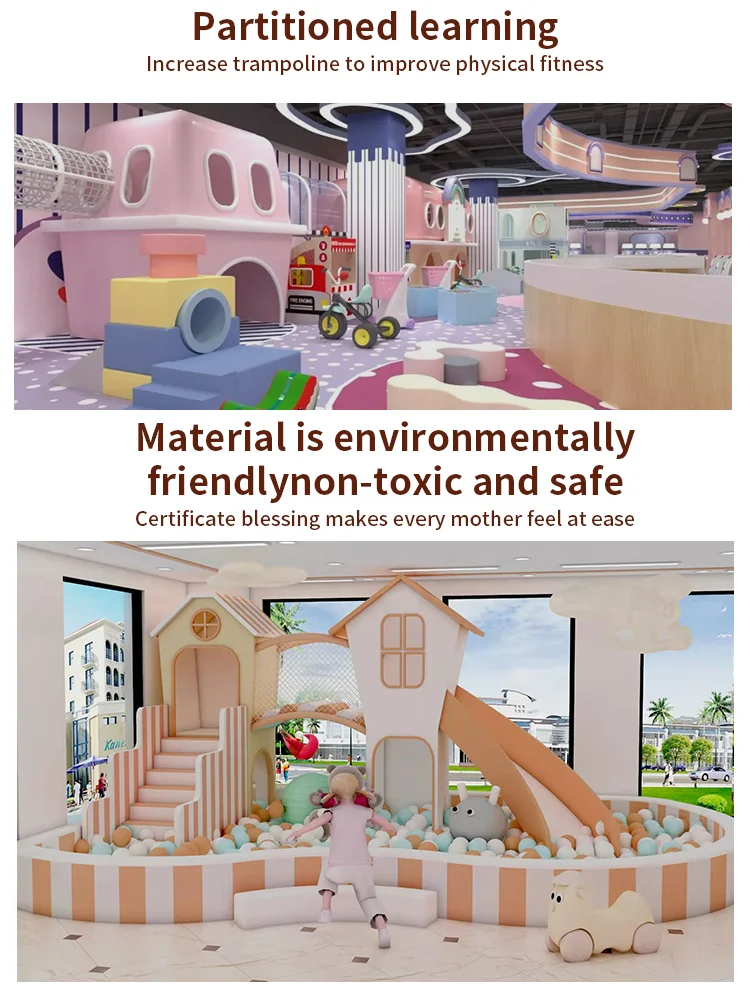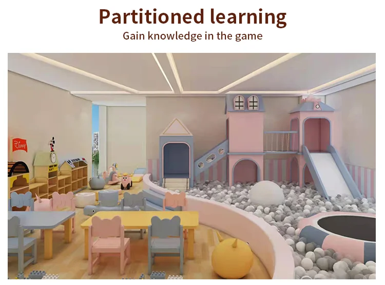 Dipartimento delle vendite del piccolo castello di piccole dimensioni per bambini e attrezzature per parchi giochi per l'asilo per i primi centri di istruzione con impianti di diapositiva