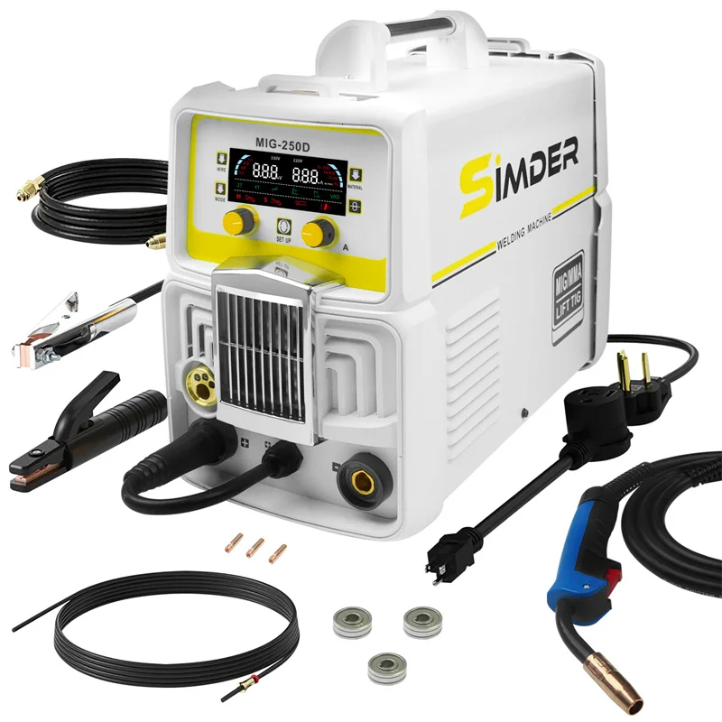 The SSIMDER MIG Welder MIG-250D is a versatile welding machine that is perfect for welding aluminum, gasless MIG, lift TIG, and stick welding. This all-in-one machine is designed to handle a wide range of welding tasks with ease and precision.
