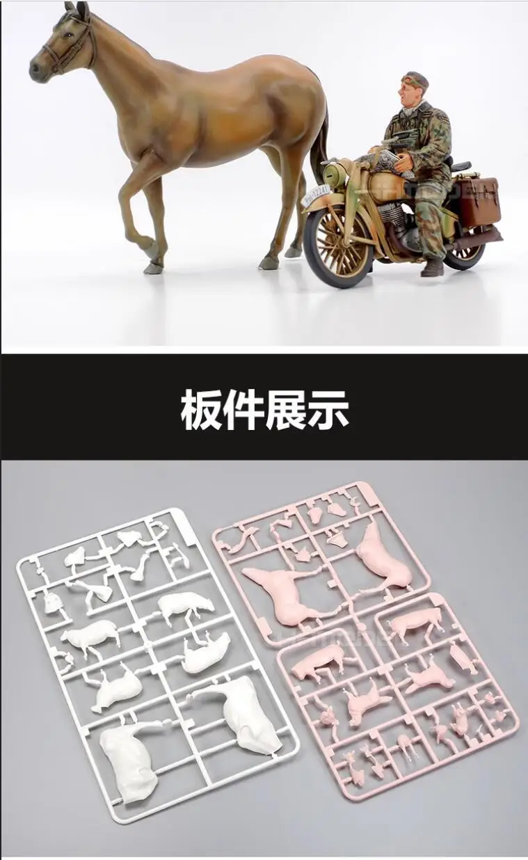 This model kit recreates livestock typically seen during WWII. During the war period, livestock played a significant role in transportation and as food. Get this succinctly, yet realistically recreated set to add an extra layer of authenticity to your diorama.