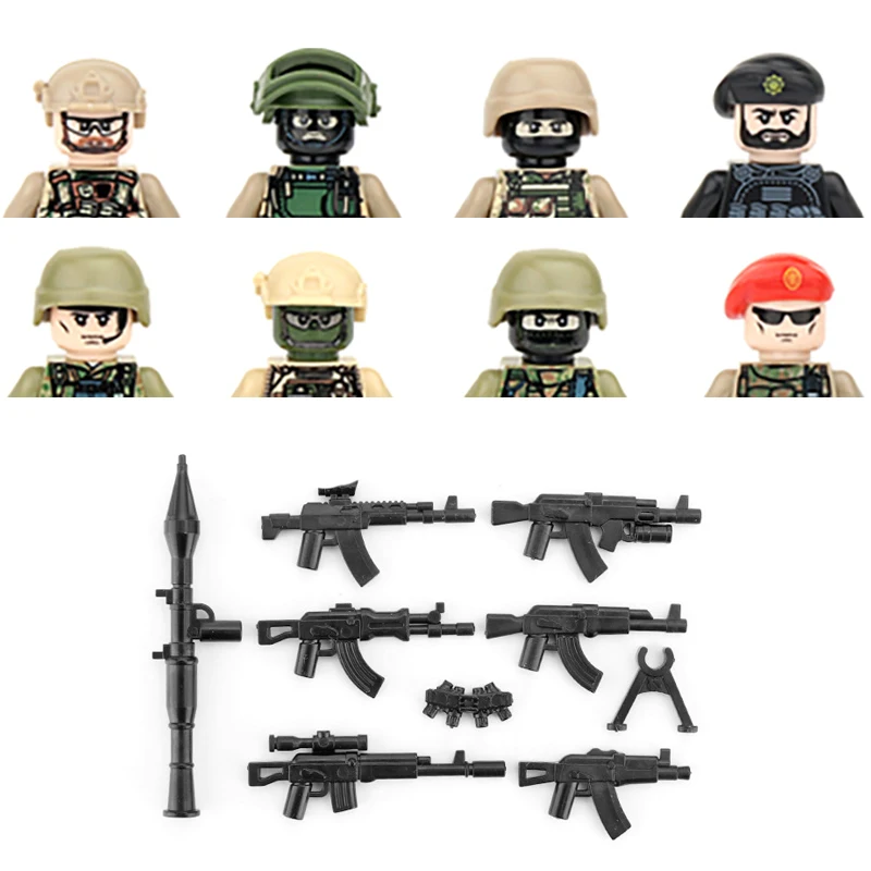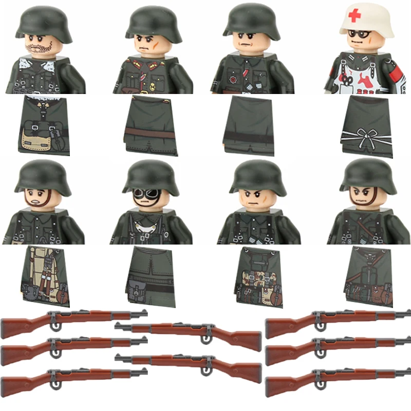 These World War II military building blocks include soldier figures, weapons, pistole, special force helmets, giubbotti, and other equipment. They are great gifts for children and adults who enjoy building and playing with toys. The set allows for creating custom military scenes and structures, making it a great choice for fans of MOC (My Own Creation) projects. These building blocks provide hours of creative and imaginative play while also teaching about historical events such as World War II. The set includes a variety of accessories to enhance the play experience and bring military-themed play to life.