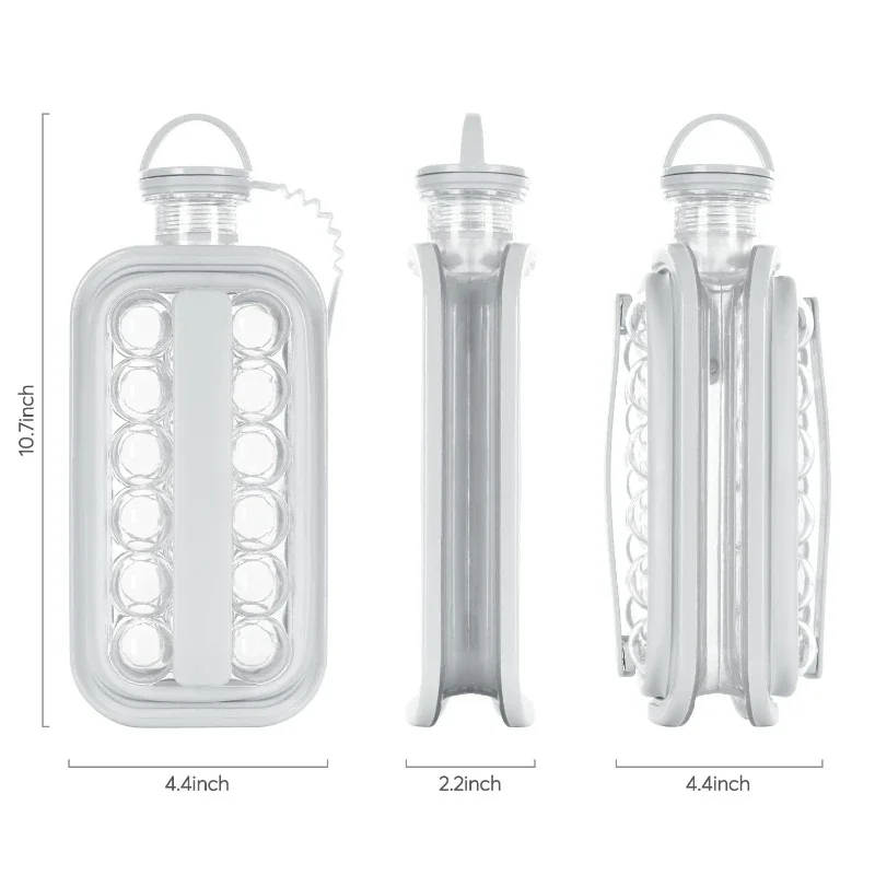 Fill up with the water or drink you want, put it in the refrigerator until it freezes, then unscrew the lid, pull the strap, and let the puck fall. Finally, you can get fresh ice,