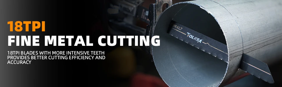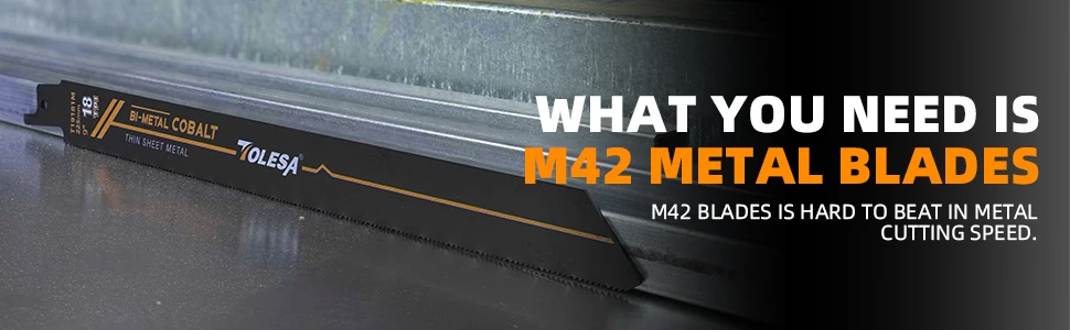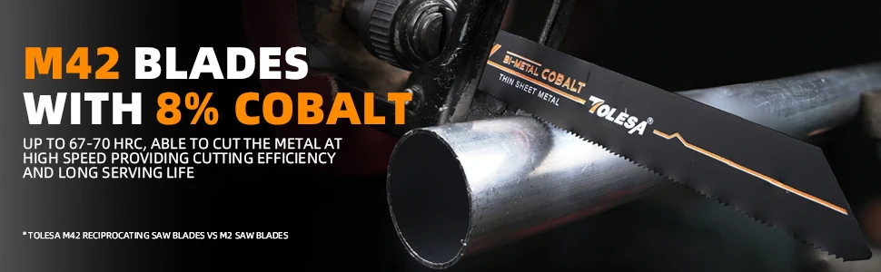 【Super Sawzall Blades】 – Compare to ordinary bi-metal sawzall blades, TOLESA M42 Bi-metal Super Metal Cutting Sawzall Blade with 8% cobalt, better heat resistance to keep sharper teeth edge longer during continuous metal cutting. To deal with more tough metal cutting, The tough M42 Bi-Metal design with with 8% cobalt allows faster cutting, longer life sawzall blades that can bend without shattering, perfect for DIYers and professionals