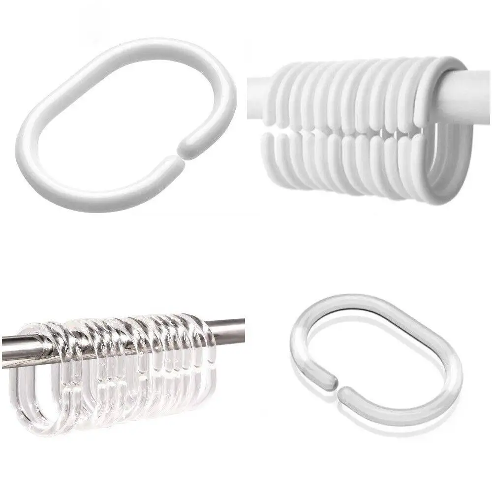 12pcs Wide Shower Curtain Hooks White Curtain Ring Plastic Glide Rollers Shower Curtain Ring for Kitchen Bathroom Windows Rod