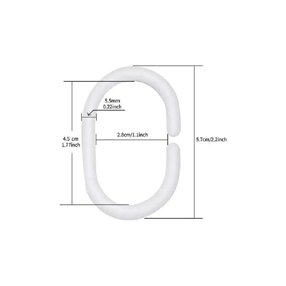 1. Shower curtain hooks are made of lightweight plastic material, which is smooth and easy to slide and pulling. The plastic material can be rust-resistant and soft enough not to scratch the shower curtain rod.