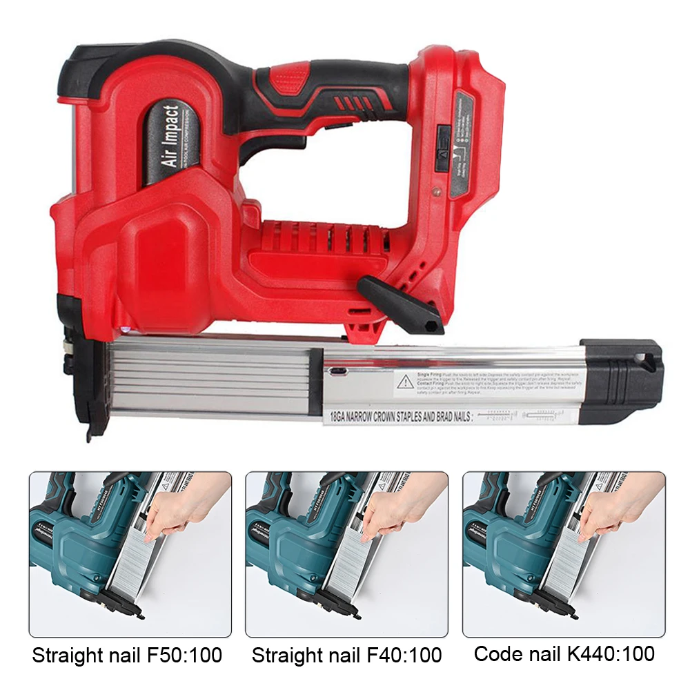 The content highlights a 2-in-1 cordless electric nailer/stapler gun that is compatible with 18V B Series Lithium batteries. The product comes with 200pcs of F50 and 9032(K432) nails. It is designed to provide efficient and convenient nailing and stapling for various projects. The tool offers the flexibility to switch between nails and staples for different applications. This versatile and portable nailer/stapler gun is ideal for professionals and DIY enthusiasts looking for a reliable and easy-to-use tool for their projects.