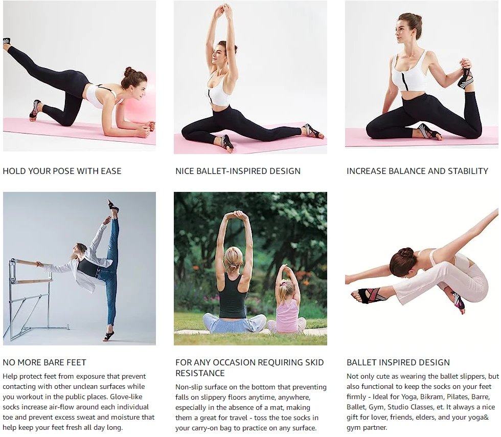 1. The specialized nonslip sole gives your feet a hygienic, barefoot experience so your toes can spread, flex and point through each pose. Perfect for dance, barre, and yoga.