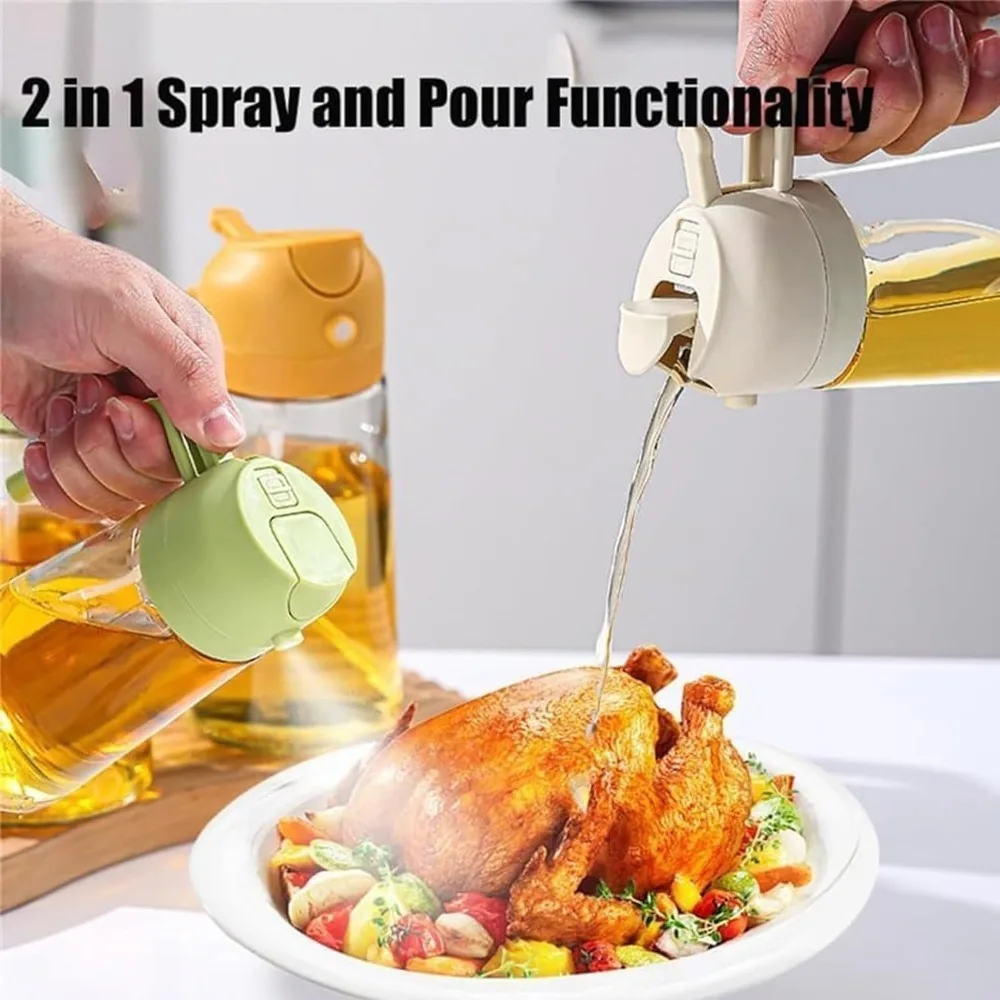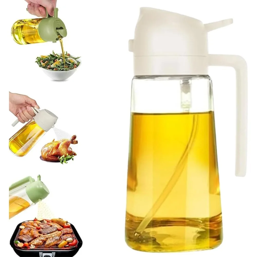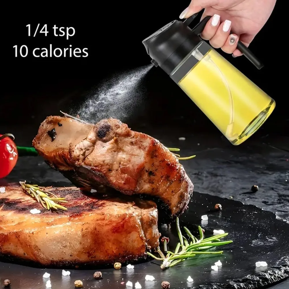 This product is a 2-in-1 olive oil sprayer and vinegar dispenser for cooking. It has a 470ml capacity and is made of glass, making it suitable for use in the kitchen, air fryer, salad preparation, baking, and BBQ. The sprayer allows for even distribution of oil and vinegar, making it a convenient tool for home chefs. It is versatile and can be used for a variety of cooking purposes.