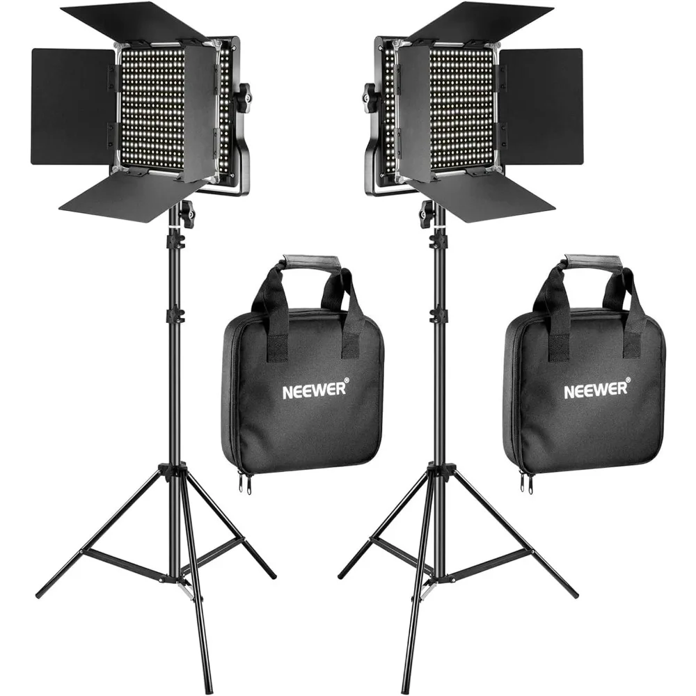 - 【Package Contents】 2 x 660 LED Video Light, 2 x Light Stand, 2 x Power Adapter, 2 x Power Cable, 2 x Carrying Bag for the Video Light