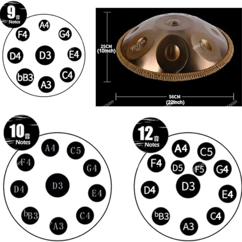 【Handmade craftsmanship】♬: Our handpan drums are all hand-hammered tuned, they will leave slight uneven marks, which are fine handmade traces. The tuner uses countless strokes to make every note accurate and have obvious hammer marks, which is normal.