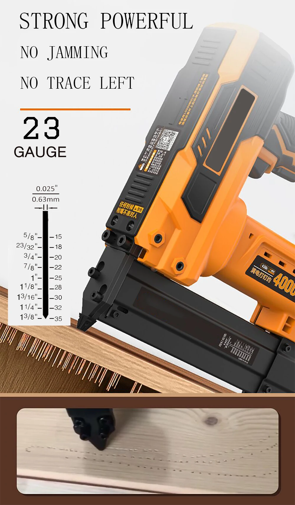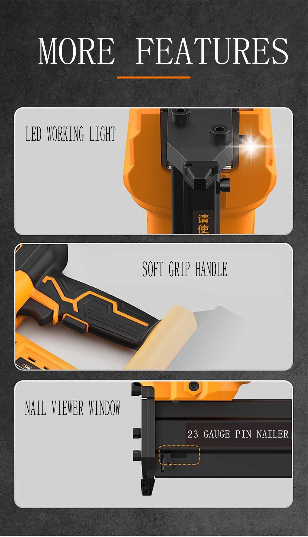 ► Drives 6 different lengths, 5/8", 11/16", 3/4", 1", 1-3/16" and 1-3/8", of 23 gauge pin nails (tool does not work with 1-1/4" Pin nails)