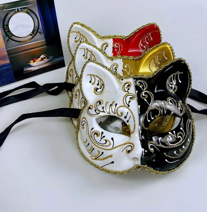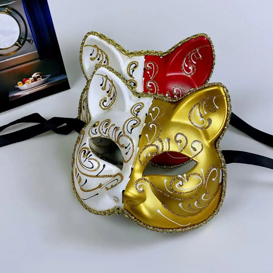 This listing is selling a set of 25 fox and cat masks for Halloween, Christmas, and other costume parties. The masks are designed in a Kabuki half-face style and can be used for animal cosplay or masquerade events. They are also suitable for anime theme parties and can be used as decorations. The set comes with 25 masks and is ideal for group events or for those looking to have a variety of masks on hand for different occasions.