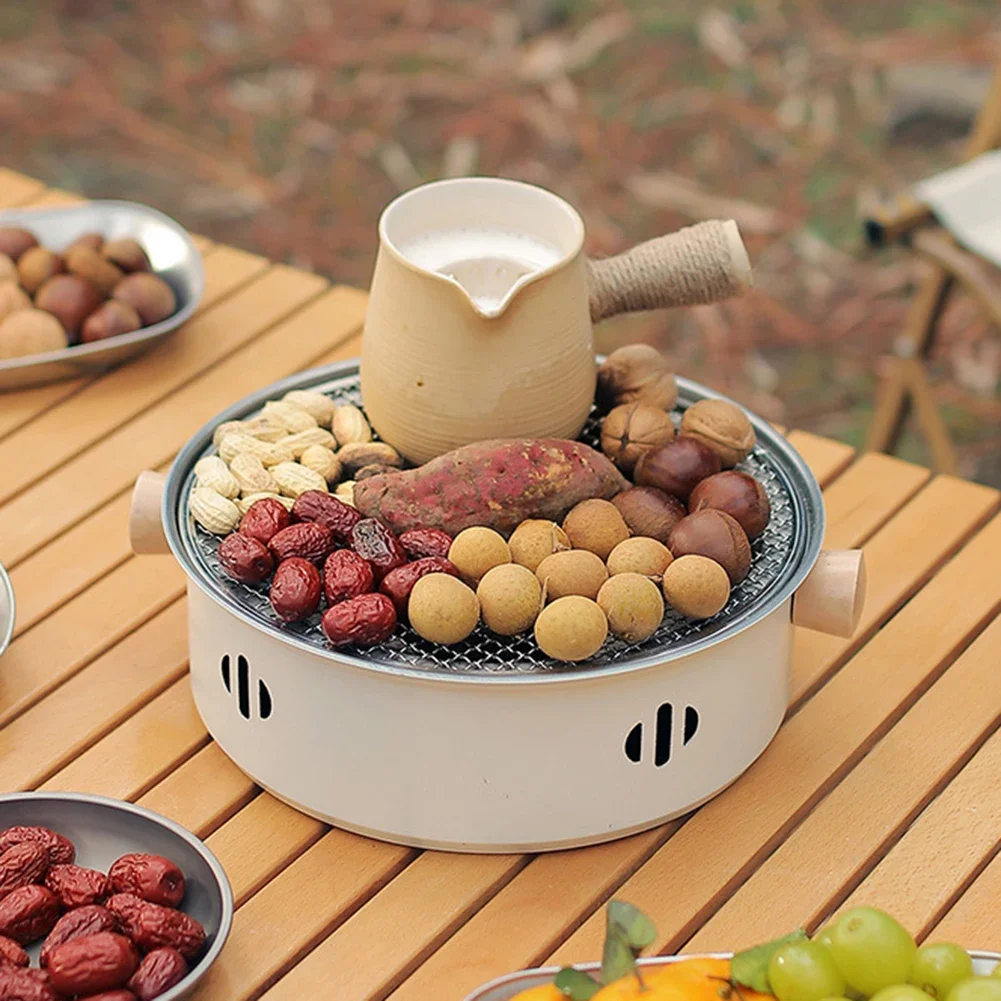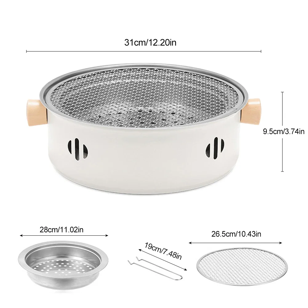 This 28cm barbecue grill is suitable for home use, outdoor camping, and picnics. It is charcoal fueled and comes with a mesh grill pan that is portable and smokeless. The grill measures 28cm in size and is perfect for grilling various foods. It is an ideal option for those who want to enjoy a barbecue experience at home or on the go. The grill is easy to use and clean, making it a convenient and practical choice for outdoor cooking.