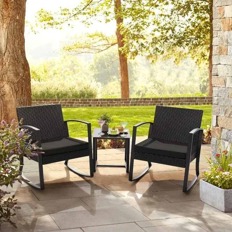 Homall patio furniture set is the ideal addition to your outdoor lounge and entertainment furniture! Stylish, comfortable and durable, you can relax and enjoy peace and quiet with this set. Coming in a set of two, the rocker blends in beautifully with the natural surroundings and can be used on porch, patios, decks and more. The comfortable rocking motion provides a relaxing and enjoyable experience that helps to relieve the stress of daily life. Spacious seating ensures a totally comfortable lounging experience, while 2-inch thick cushions add a touch of luxury. Order today and enjoy the many benefits of this stylish and comfortable seating set!