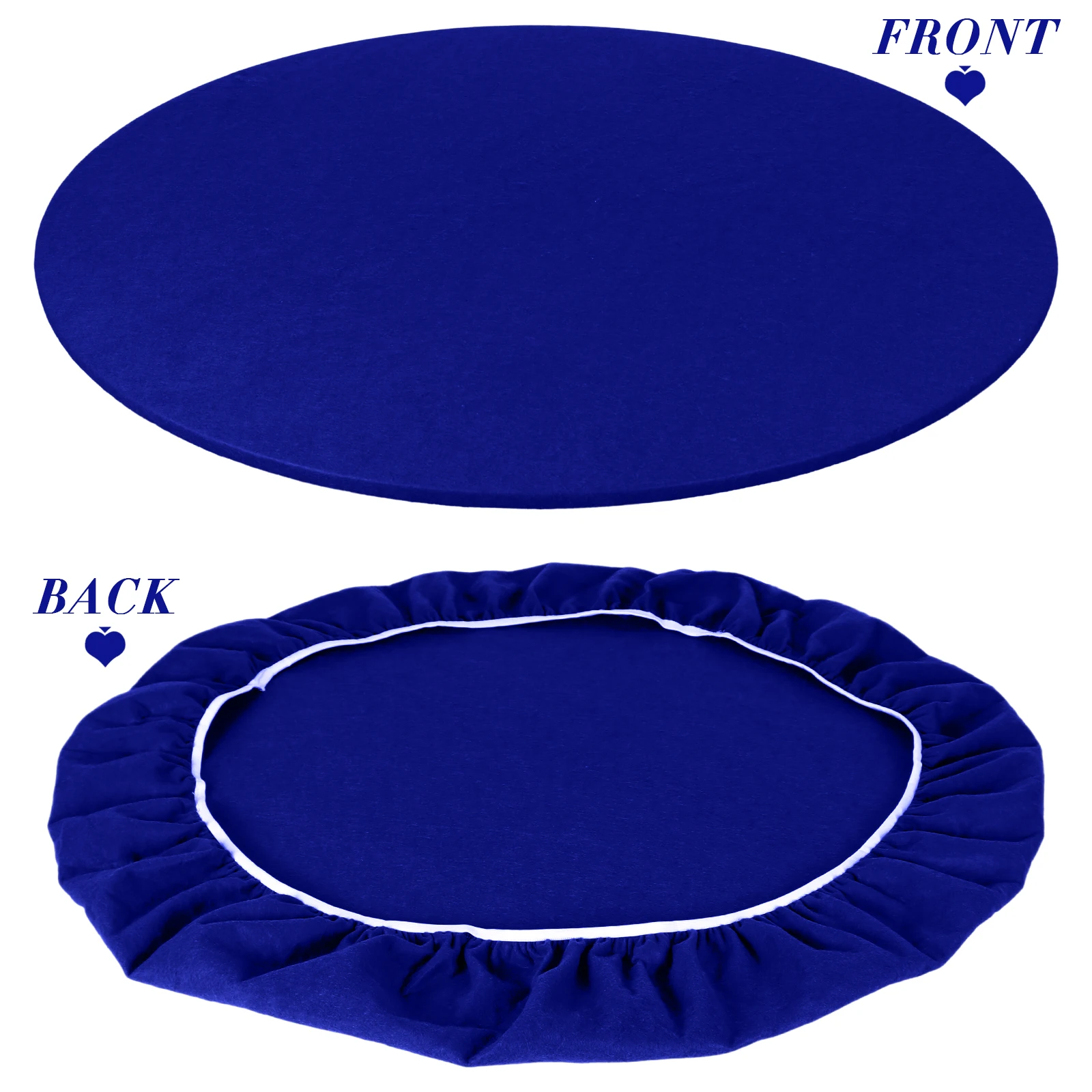 36-44 Inches Blue Game Table Topper Mat Felt Card Game Table Cover Round Tablecloth Poker Table Cover Elastic Fitted Round