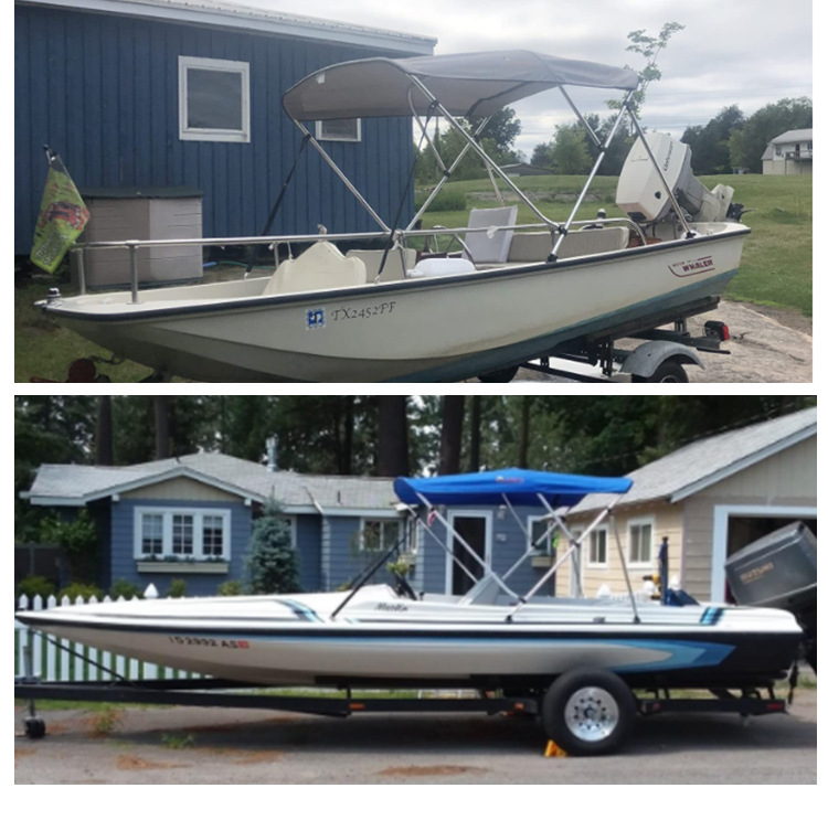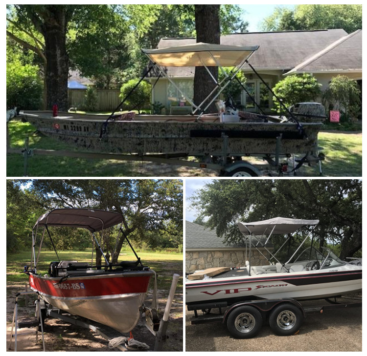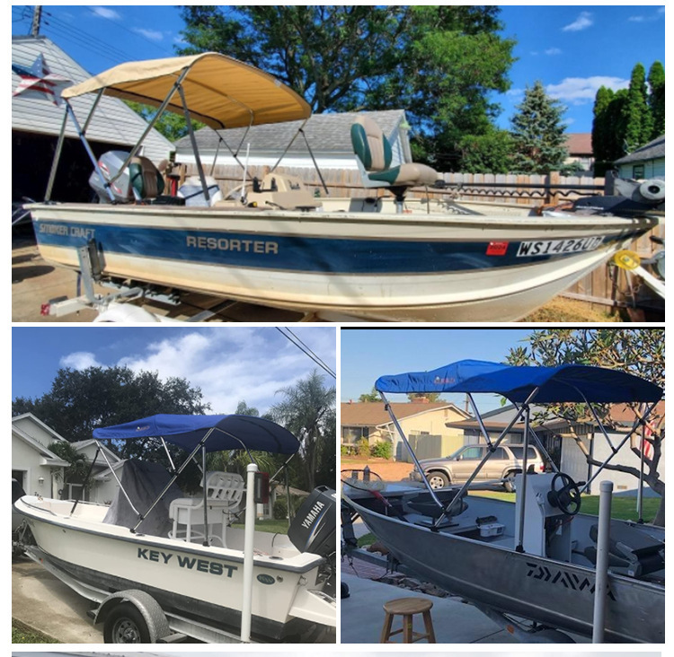 4 Bow Bimini Top for Boat 600D Polyester Stainless Steel Frame with Support Pole Pontoon Boat Customized Size
