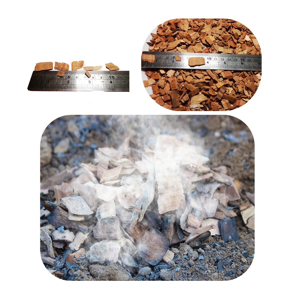 These are 500g bags of wood chips and sawdust for use in smokers and BBQs. They are suitable for creating a smoky flavor when grilling or smoking meat, fish, or vegetables. The wood chips are made from fruit trees and come in varying sizes, from sawdust to wood blocks measuring 0.5-3cm. Perfect for adding a delicious smoky essence to your cooking, these wood chips are ideal for outdoor cooking enthusiasts looking to enhance their barbecue experience.