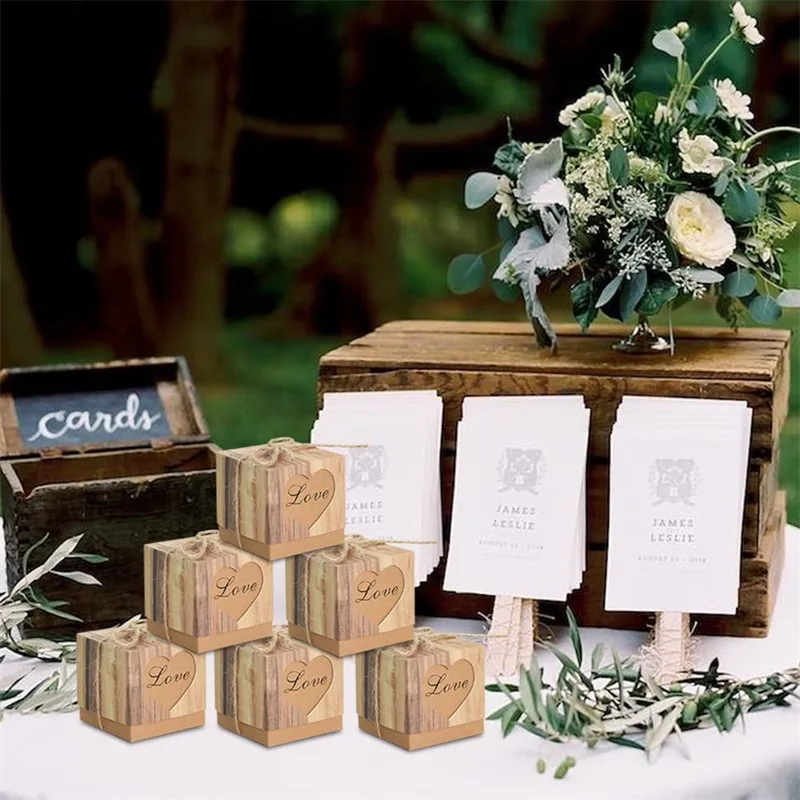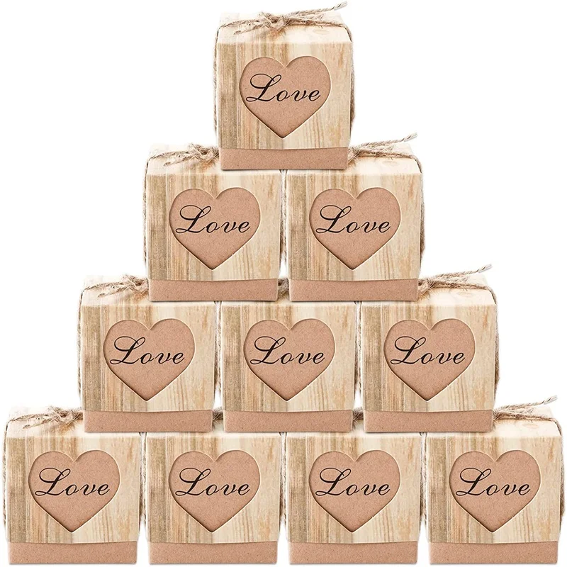 50PCS Love Kraft Gift Boxes with Burlap Twine for Wedding Favors Brida…