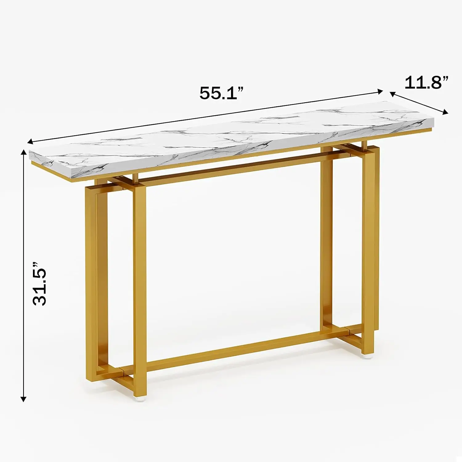 Sure! Here is a optimized product description for the 55’’ Gold Console Table with Marble Pattern Top: