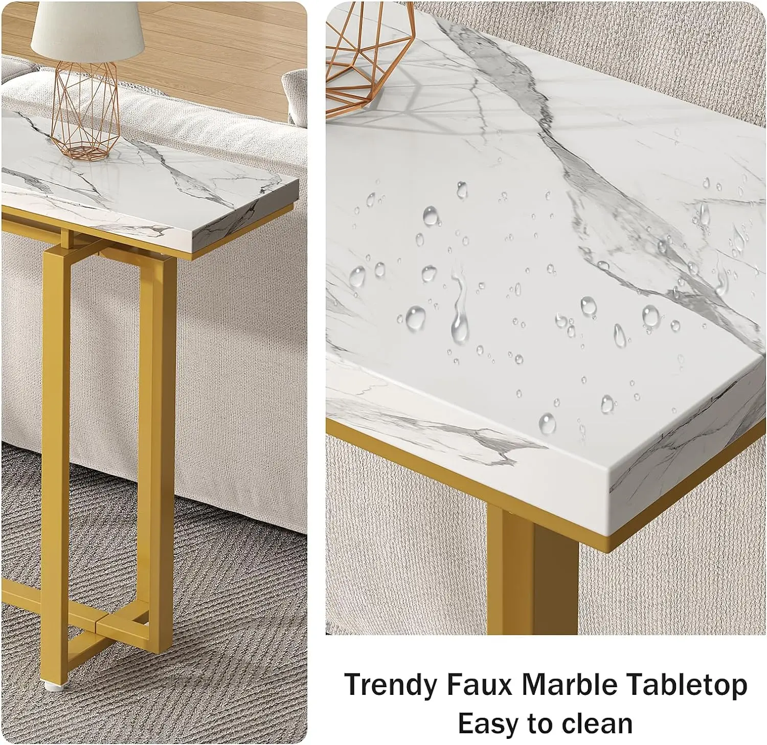 Unique Design – Our console table features a graceful curved edge design, providing an inviting visual appeal. The base showcases an artful arrangement of ten gold-finished poles, creating an eye-catching style from every angle. The special marble pattern surface is both smooth and naturally elegant.