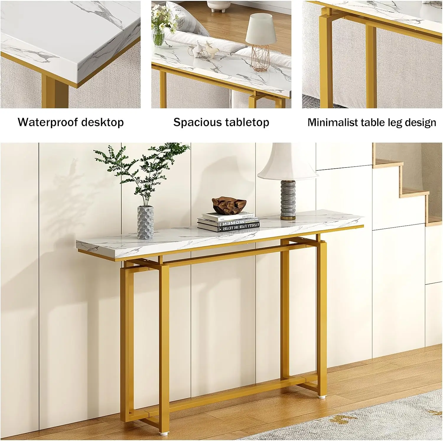 Add a touch of luxury to your living space with our stunning 55’’ Gold Console Table featuring a sleek marble pattern top. This elegant entry table is perfect for adding a touch of sophistication to any room. The gold finish adds a touch of glamour while the marble pattern top adds a modern twist. This sofa table is ideal for displaying your favorite decor pieces or for showcasing a beautiful floral arrangement. Elevate your home decor with this gorgeous and versatile console table today!