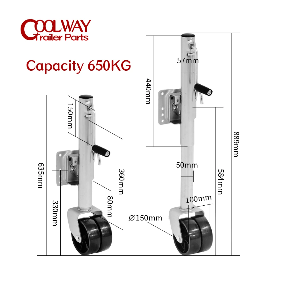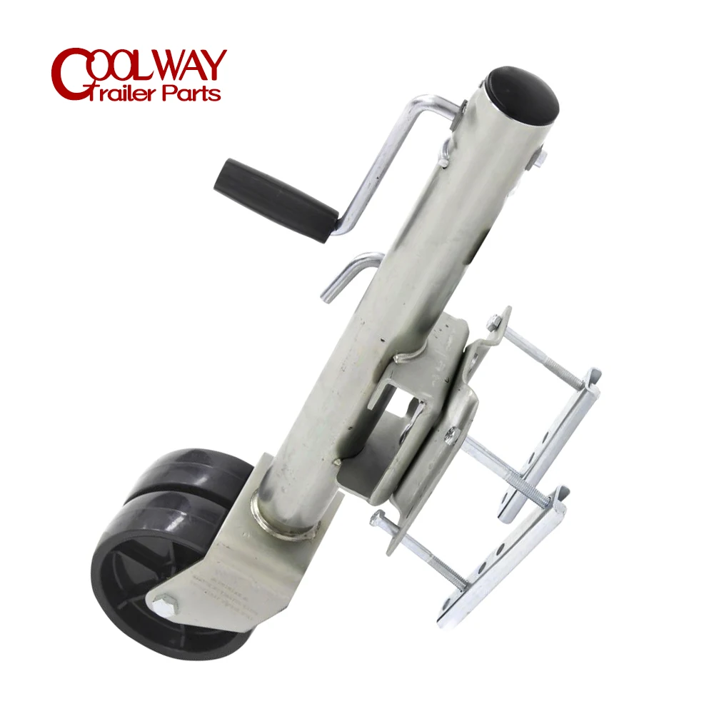 6″ Double Solid Wheel Sidewind Round Swivel Trailer Jack with Bolt-On Capacity of 650 KG, Jockey Wheel for Boat RV Parts and Accessories