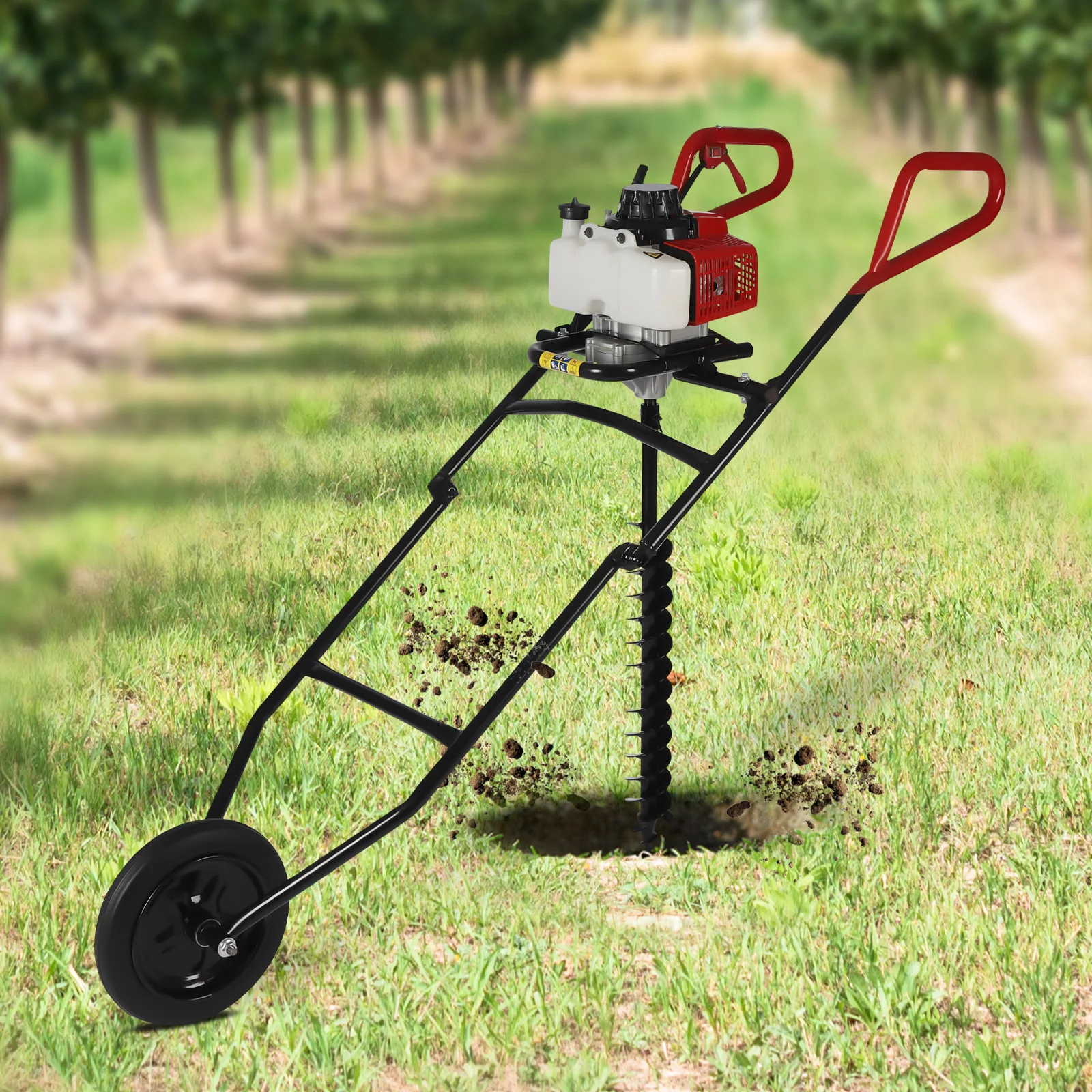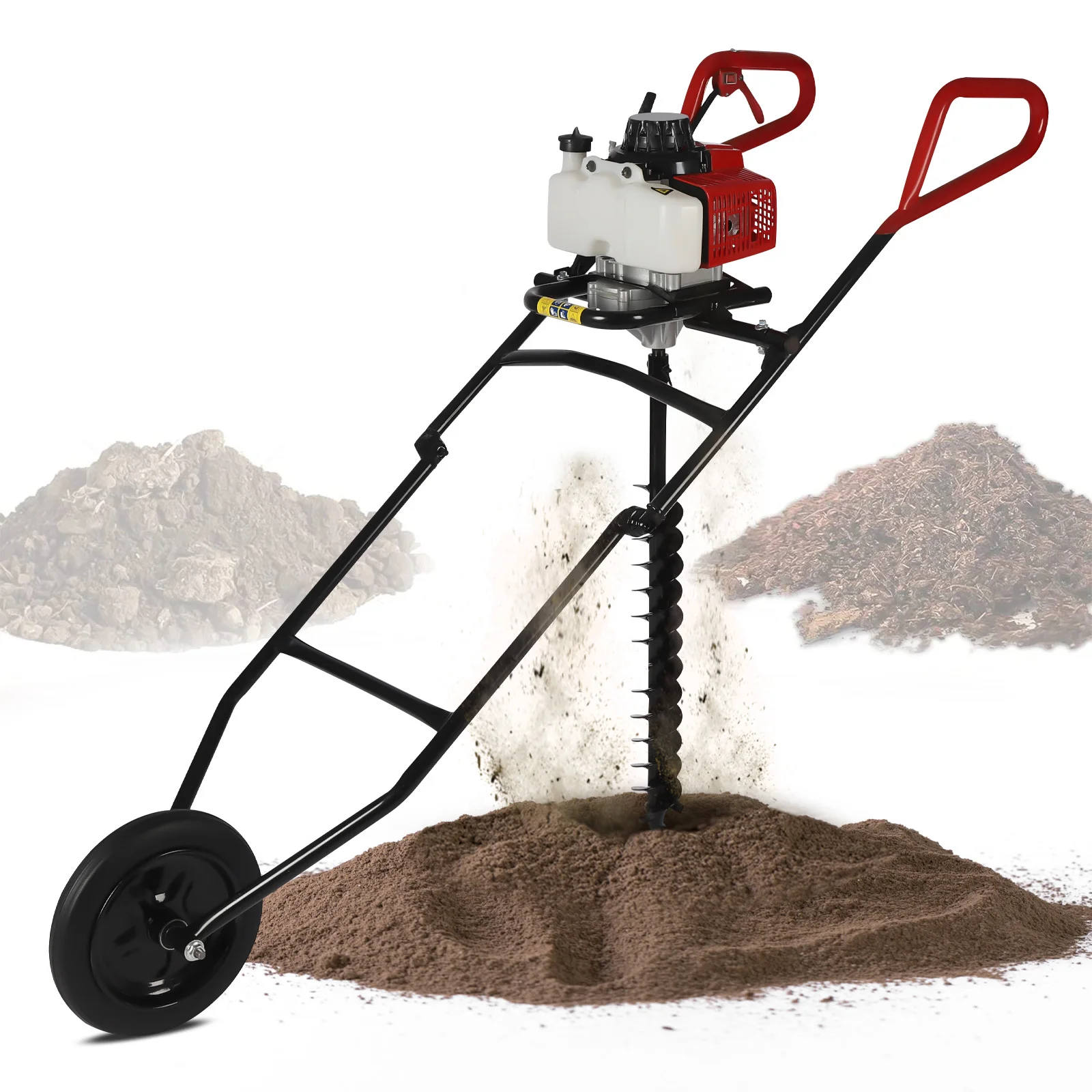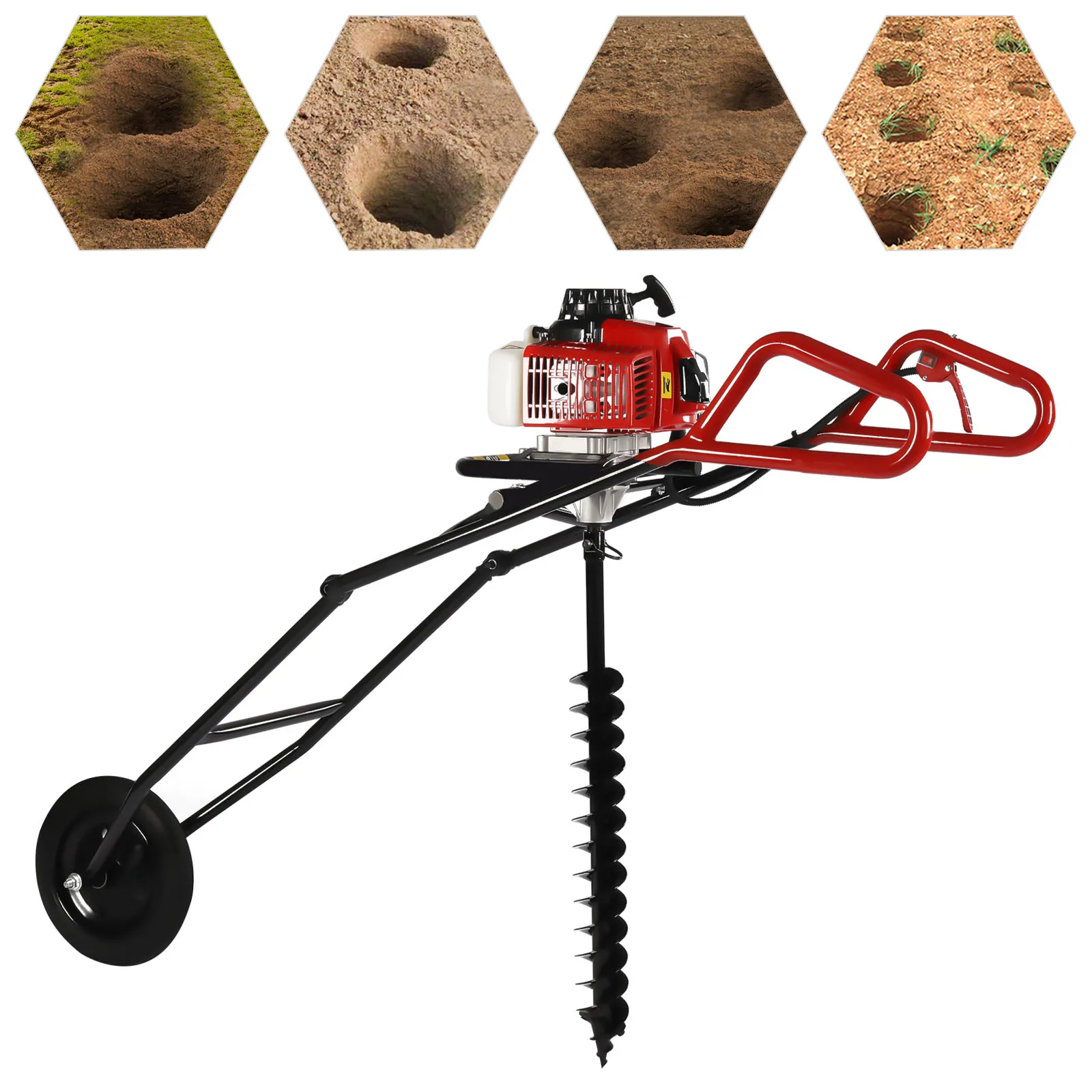 Convenient to Operate: It has a simple hand-pull starter that makes it easy to start the machine by simply pulling it back. Then you just need to hold the two handles and push down to achieve digging, which can save you lots of time and effort.