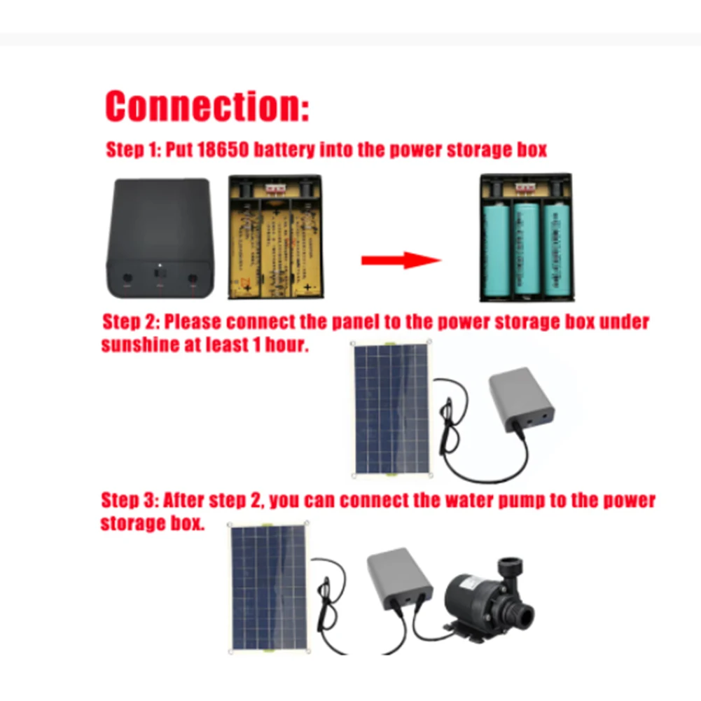 The 800L/H Brushless Solar Water Pump Kit includes a 50W solar panel and a powerful water pump, ideal for use in fish ponds, garden fountains, and other water decorations. The brushless design ensures efficient and durable performance, while the solar panel allows for eco-friendly and cost-effective operation. This kit is designed to provide a consistent flow of water, making it perfect for maintaining the beauty and health of your outdoor water features.