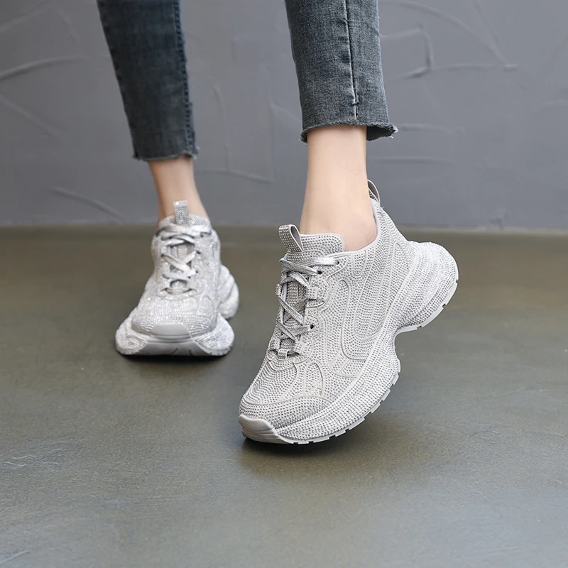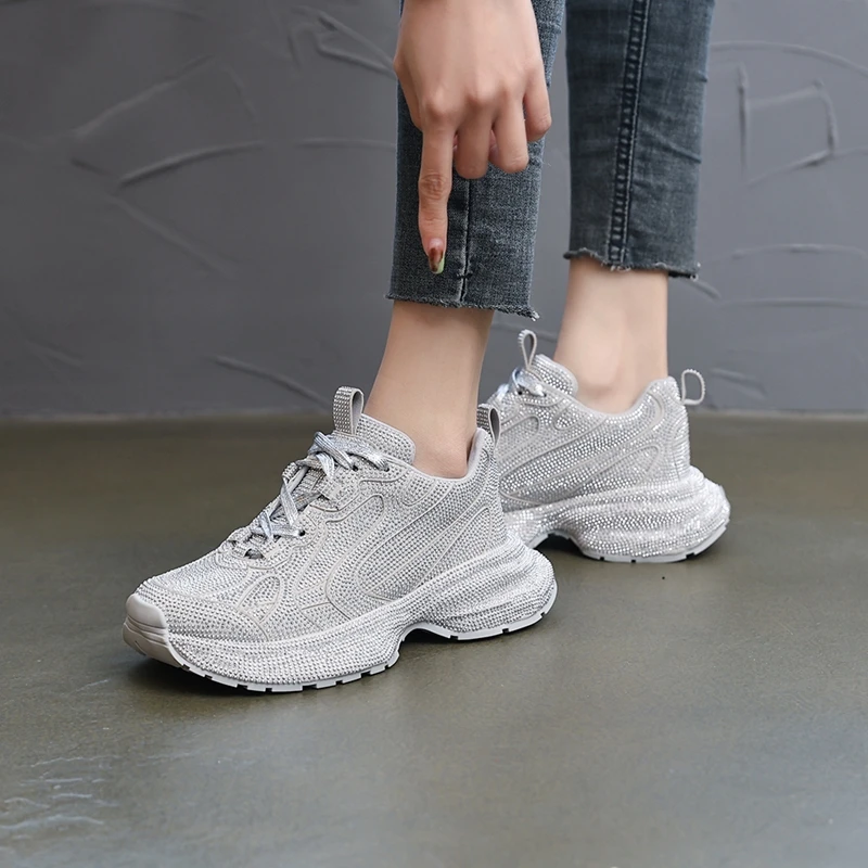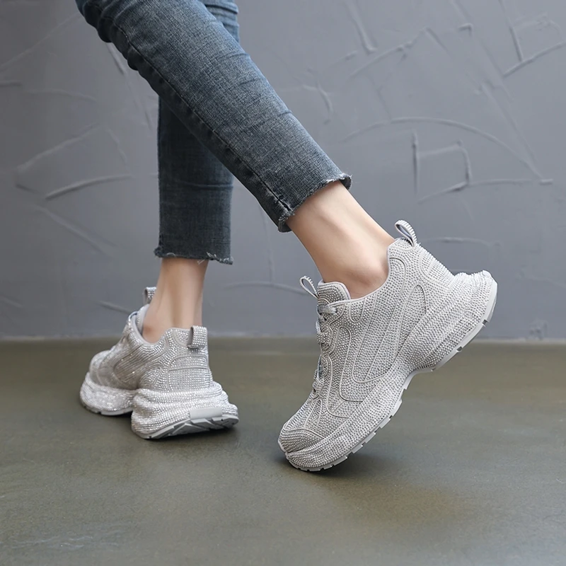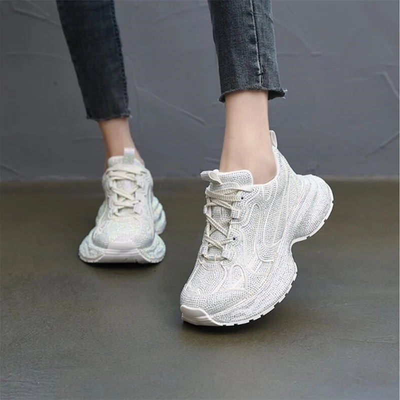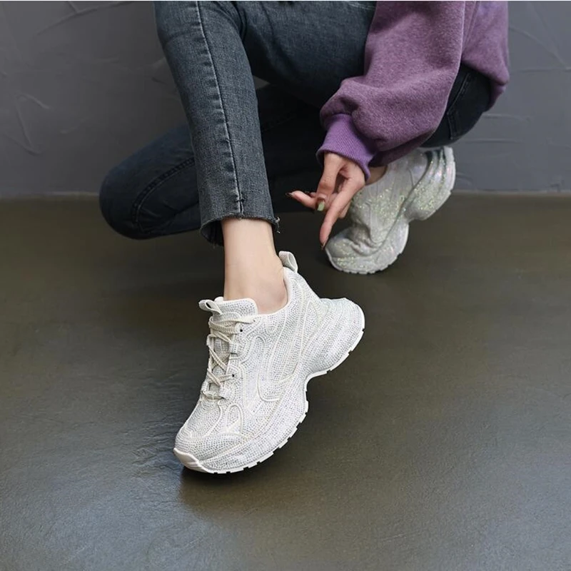 The AIYUQI Women Sneakers Sheepskin 2024 New Rhinestone Rashion Women Flat Casual Shoes features a stylish design with rhinestone embellishments. Made with quality sheepskin material, these sneakers are comfortable and durable for daily wear. The flat sole provides added support and ease of movement. Perfect for casual wear, these shoes are fashionable and versatile, making them suitable for various occasions. Upgrade your sneaker collection with these trendy and elegant shoes that offer both style and comfort.