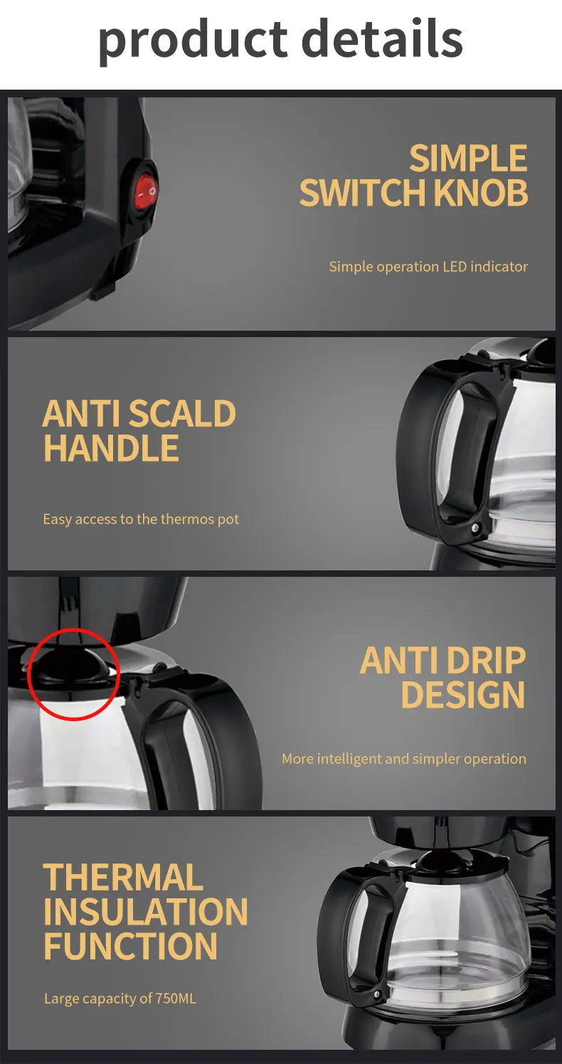 750ml coffee maker with warming plate ideal for homes, apartments, dorm rooms, or work spaces.