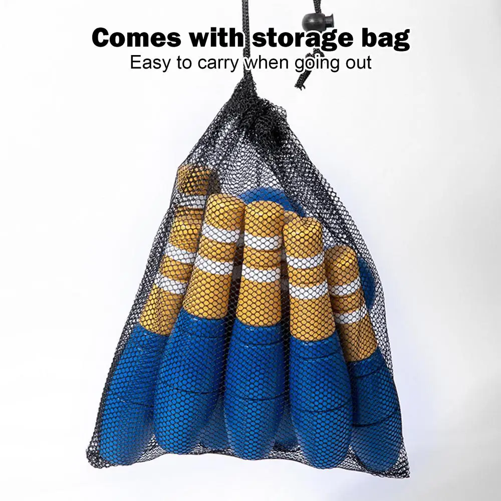 - Easy to Carry: Add a new level of fun to your events with this Wooden Bowling Game Set. Enjoy playing outdoors or indoors and amaze your friends and family with the included drawstring mesh bag for effortless storage and transportation.