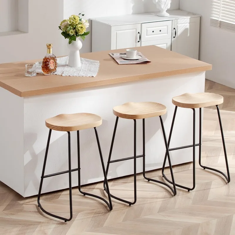 Bar Stools Set of 3, Counter Height Saddle Seat Bar Stools, 26\