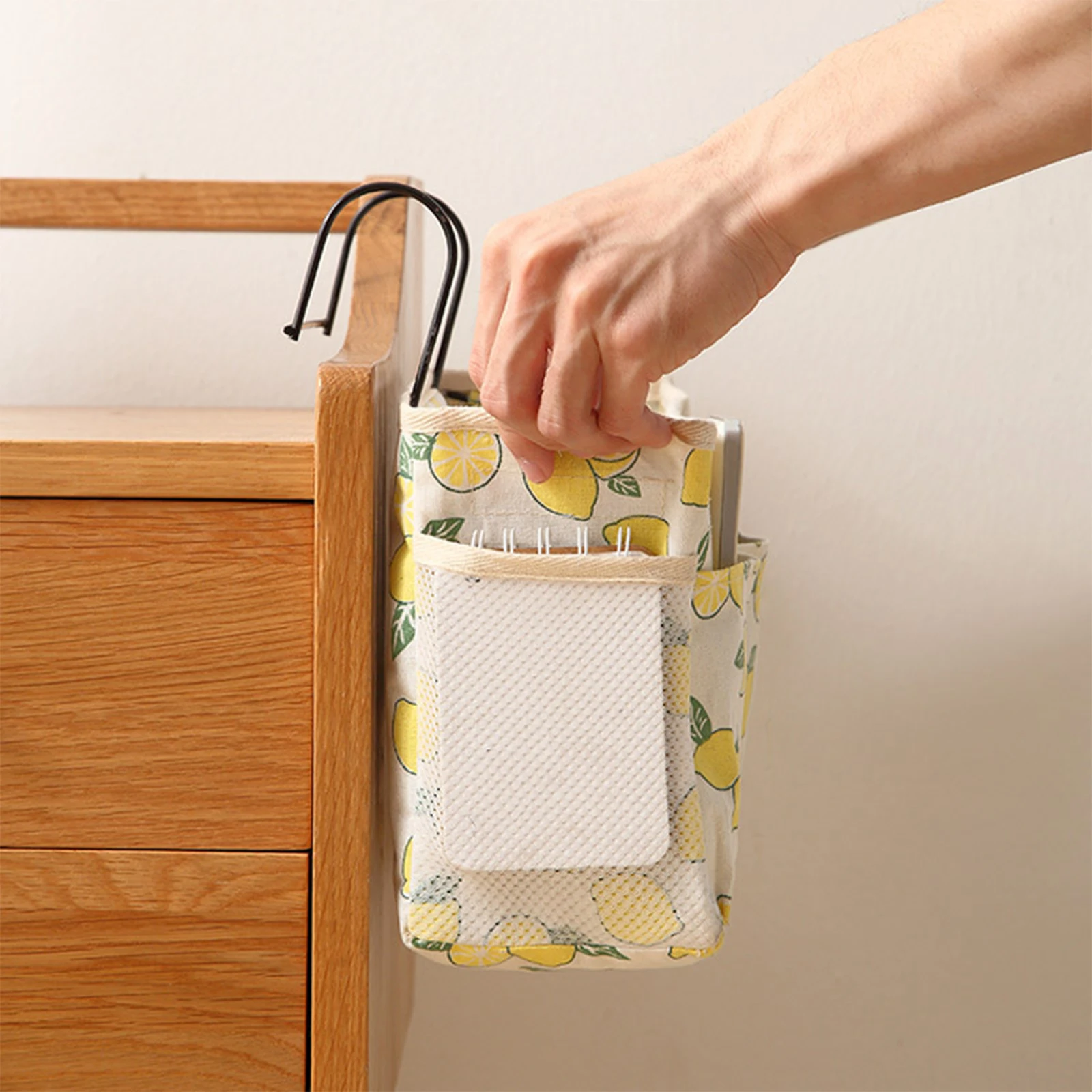 Bedside caddy storage organizer: double front pockets, side net pockets, separate hanging pockets, you can store books, magazines, small toys, water cups, pens and other school supplies or daily necessities. There are many large capacity storage and you can take it at hand.