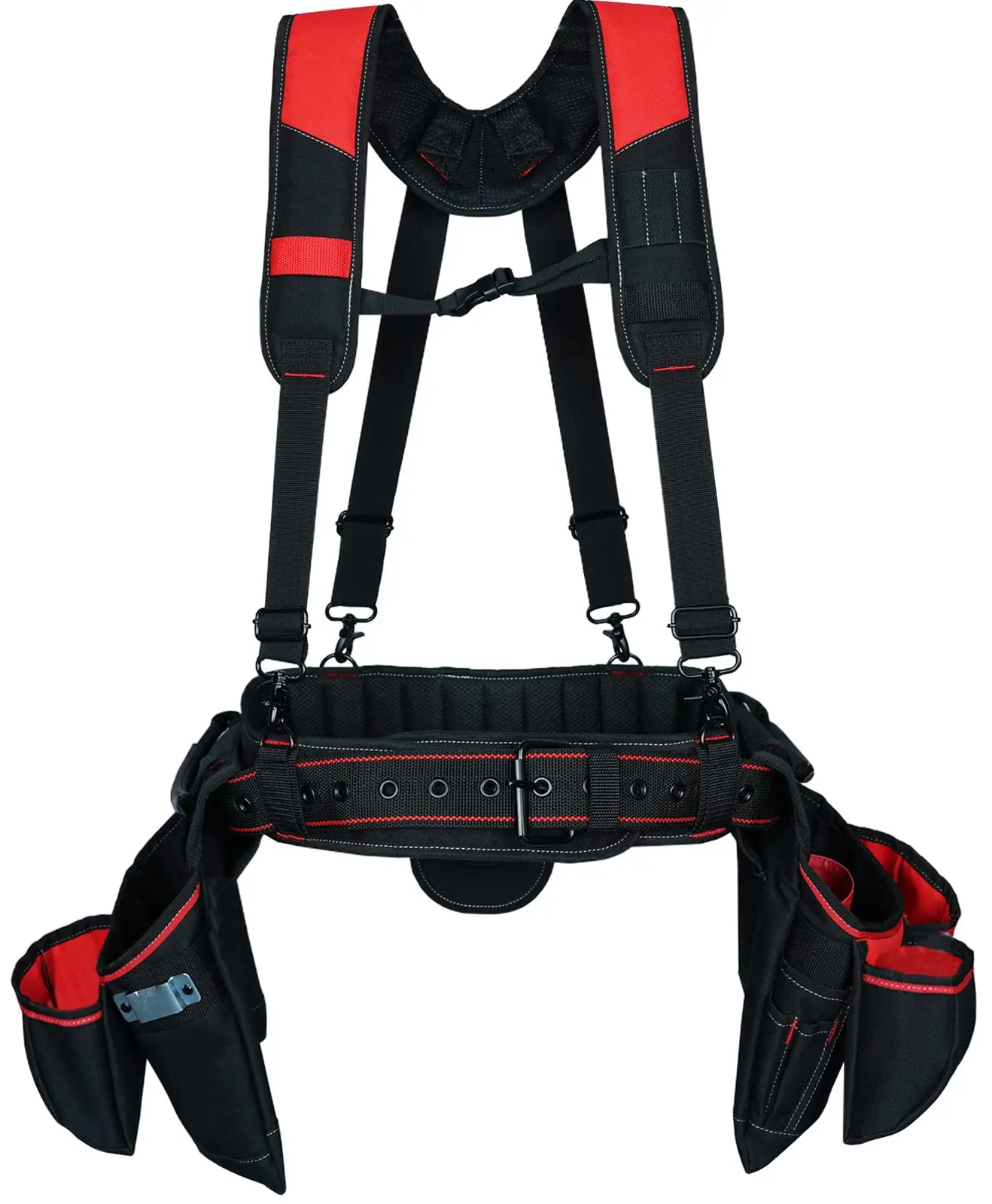 Belt with Suspenders – Pro Framer Belt/Suspenders Combo Apron with Multiple Pockets & Hammer Holder for Carpenter, Construction and Electrician