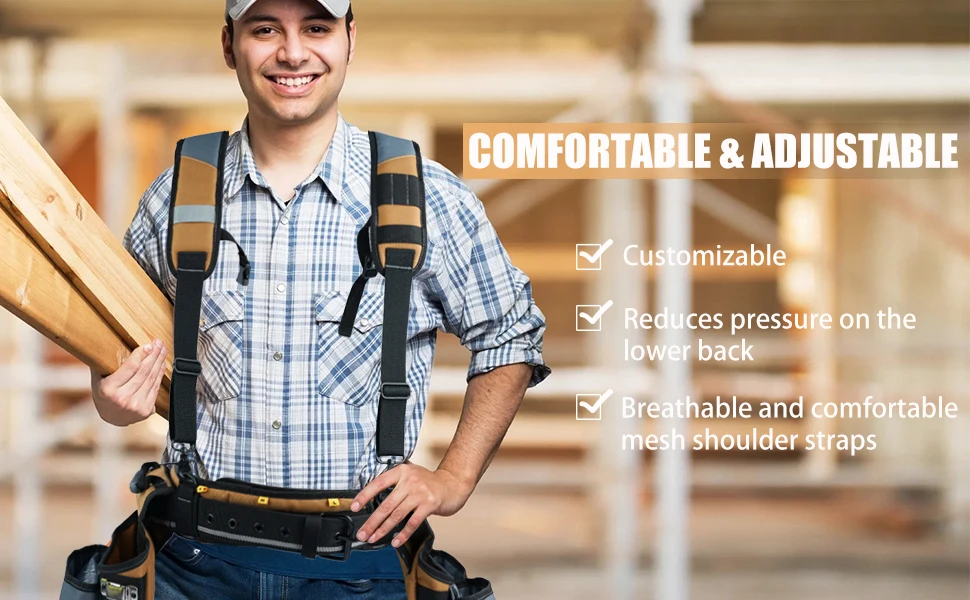 【Comfortable】The roofing tool belt and waistband are easy to adjust to fit your size. Suspenders fit 5’2″ to 5’7″ tall. The belt measures 53″ long and fits waists 30″-45″. The padded harness and waistband provide a comfortable and breathable wearing experience.
