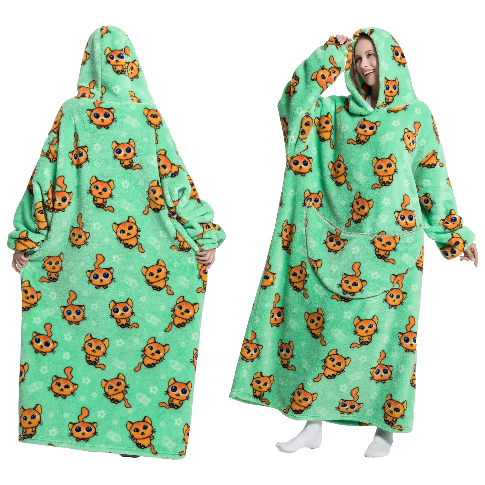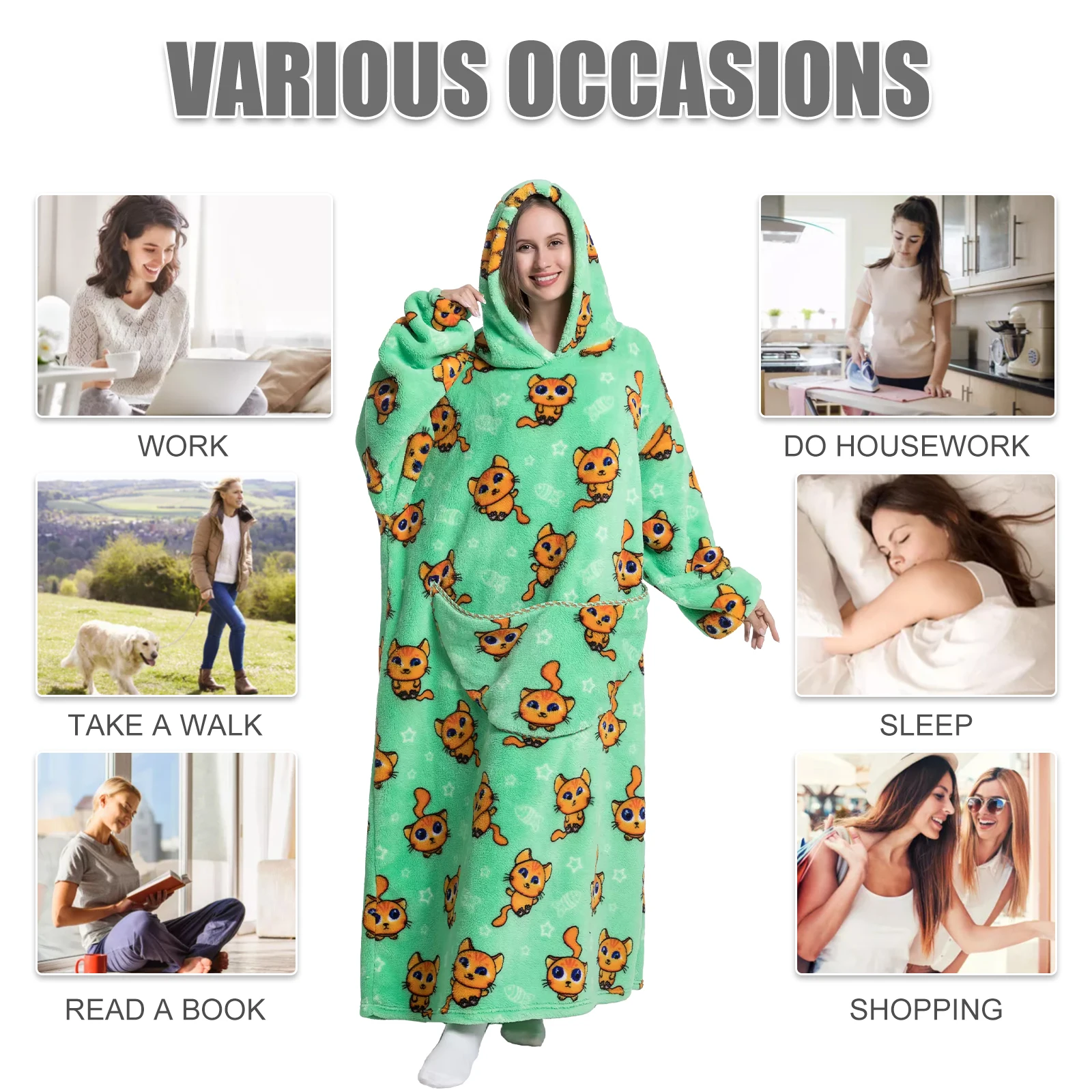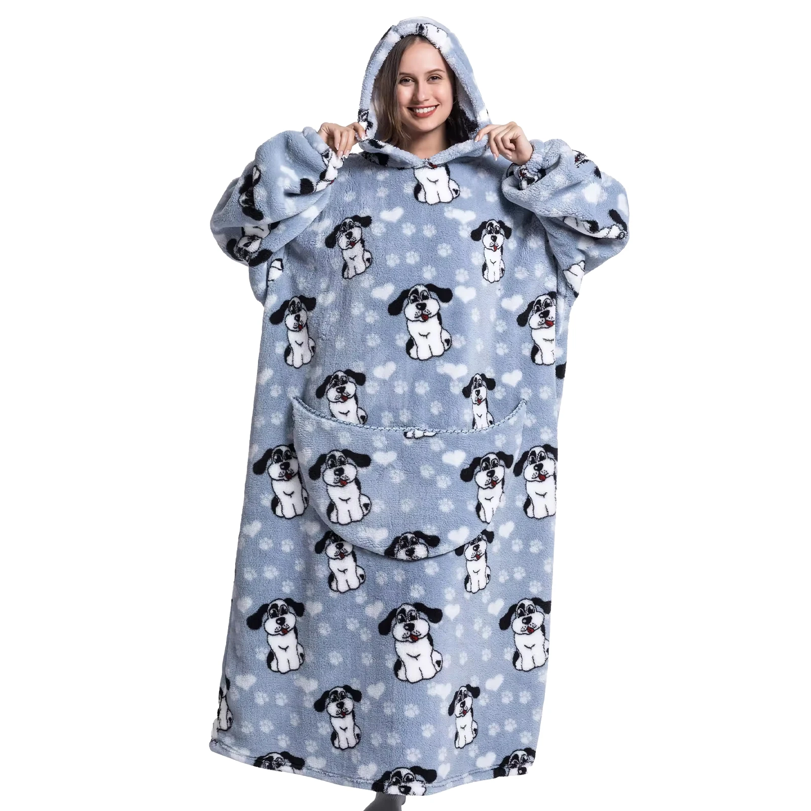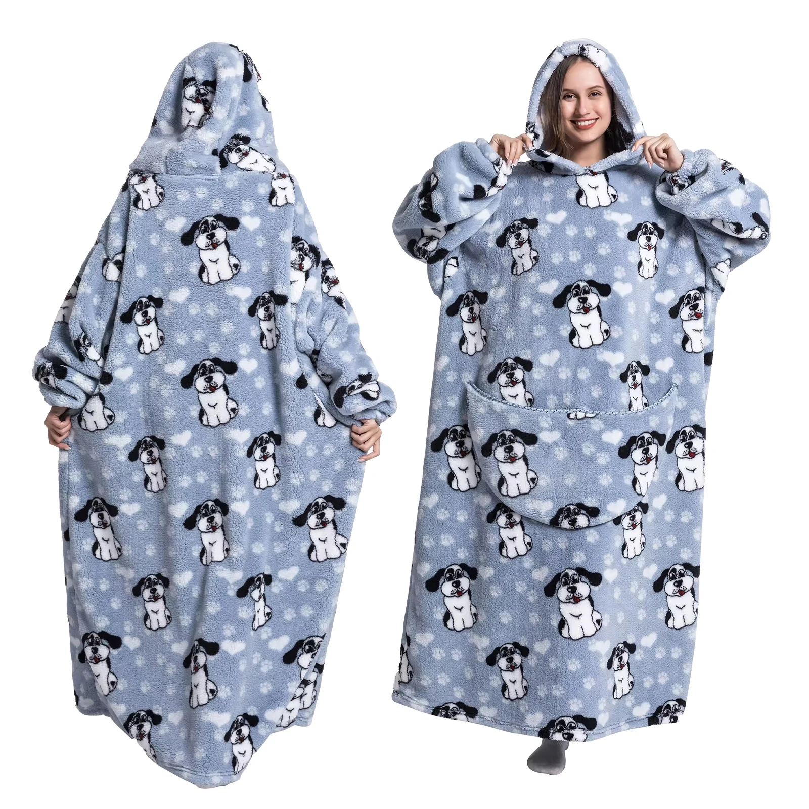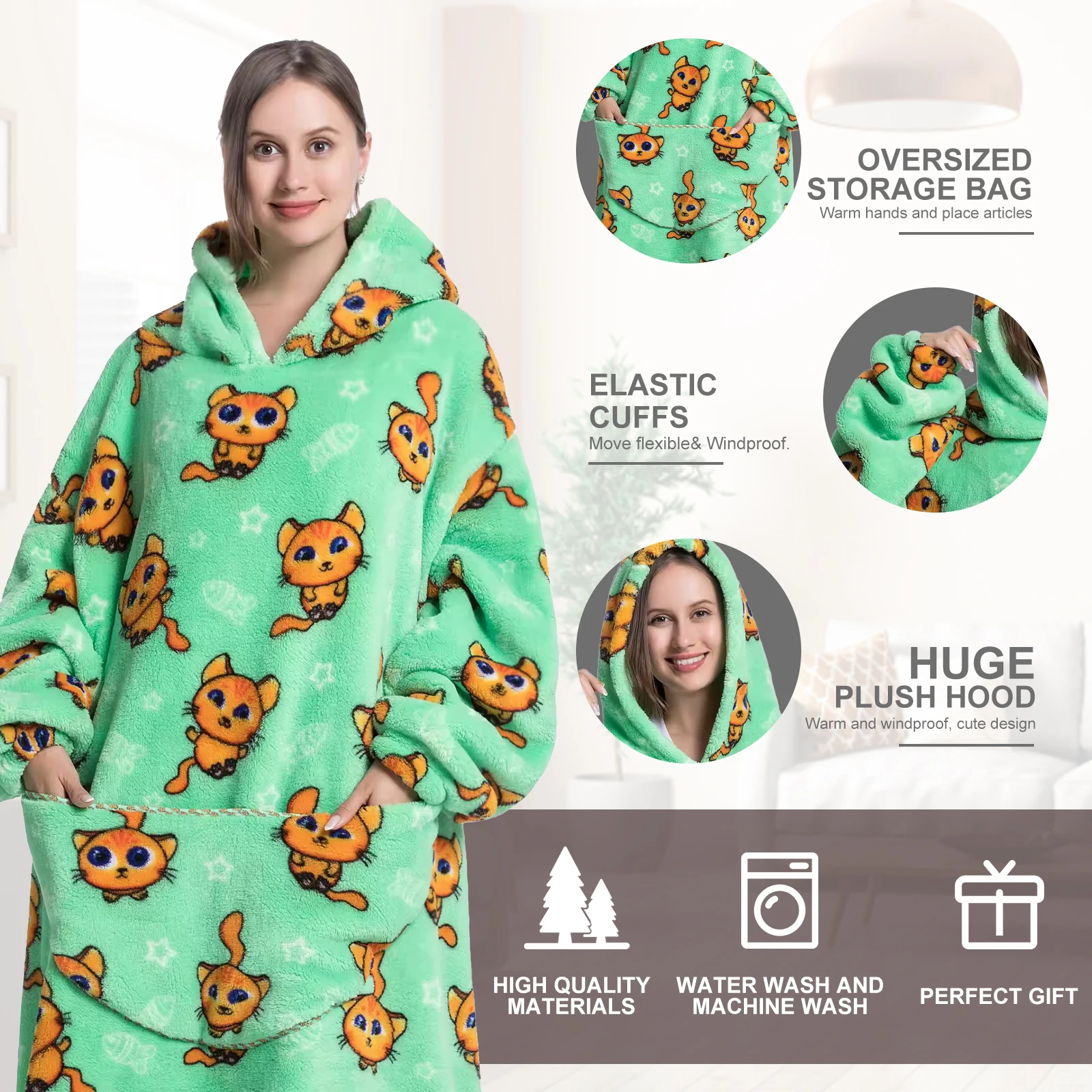 Stay cozy and warm with this oversized wearable hooded blanket sweatshirt, featuring cute cartoon prints. Perfect for men and women, this hooded blanket is great for lounging at home or staying warm on the go. The convenient dropshipping option makes it easy to order and receive your blanket hoodie without any hassle. This unique and practical item combines the comfort of a blanket with the style of a hoodie, making it a must-have for anyone looking to stay warm and stylish during colder months.