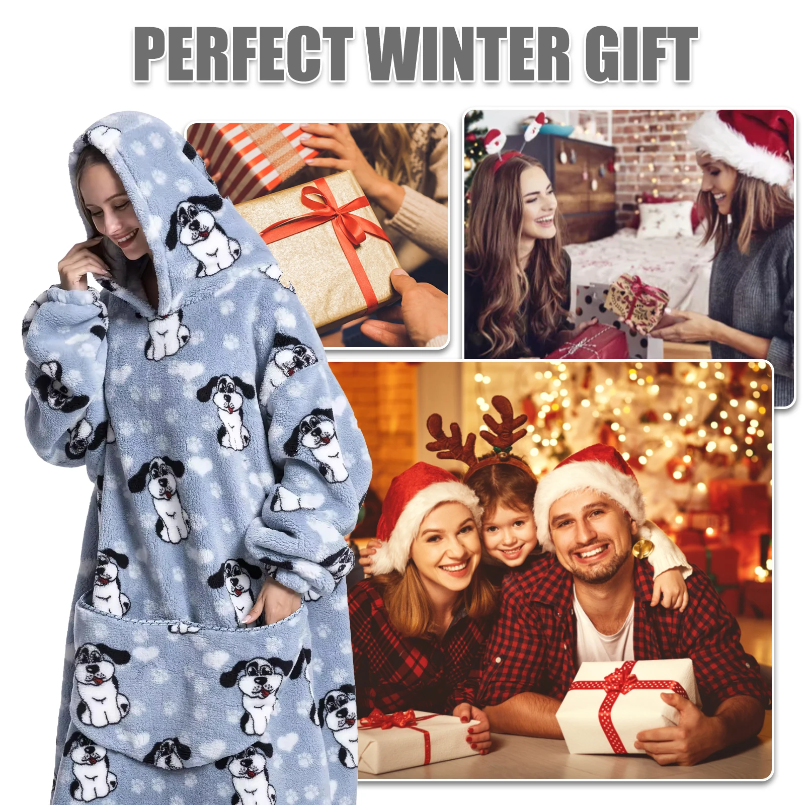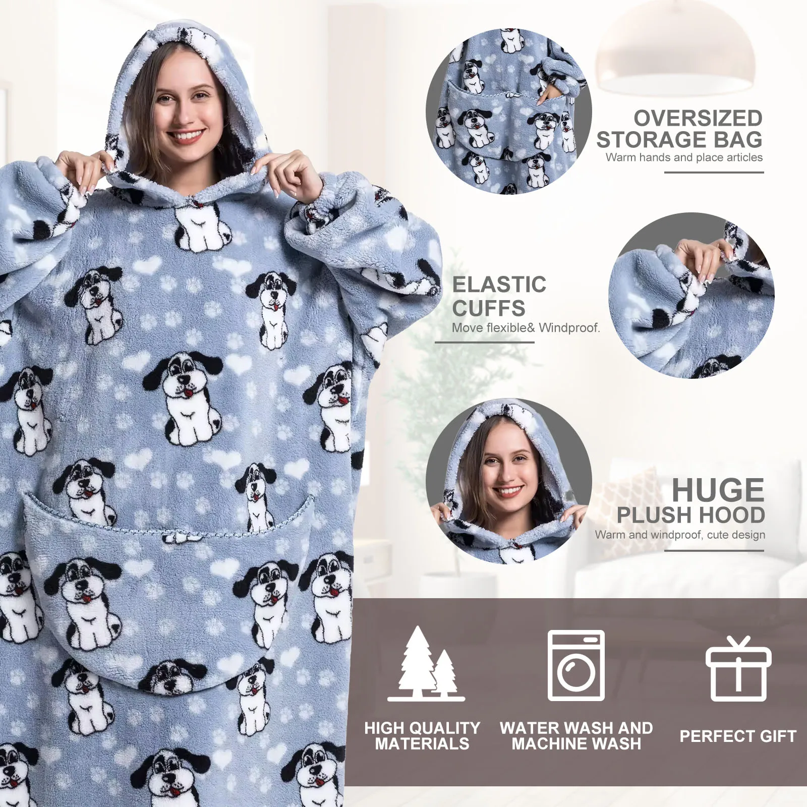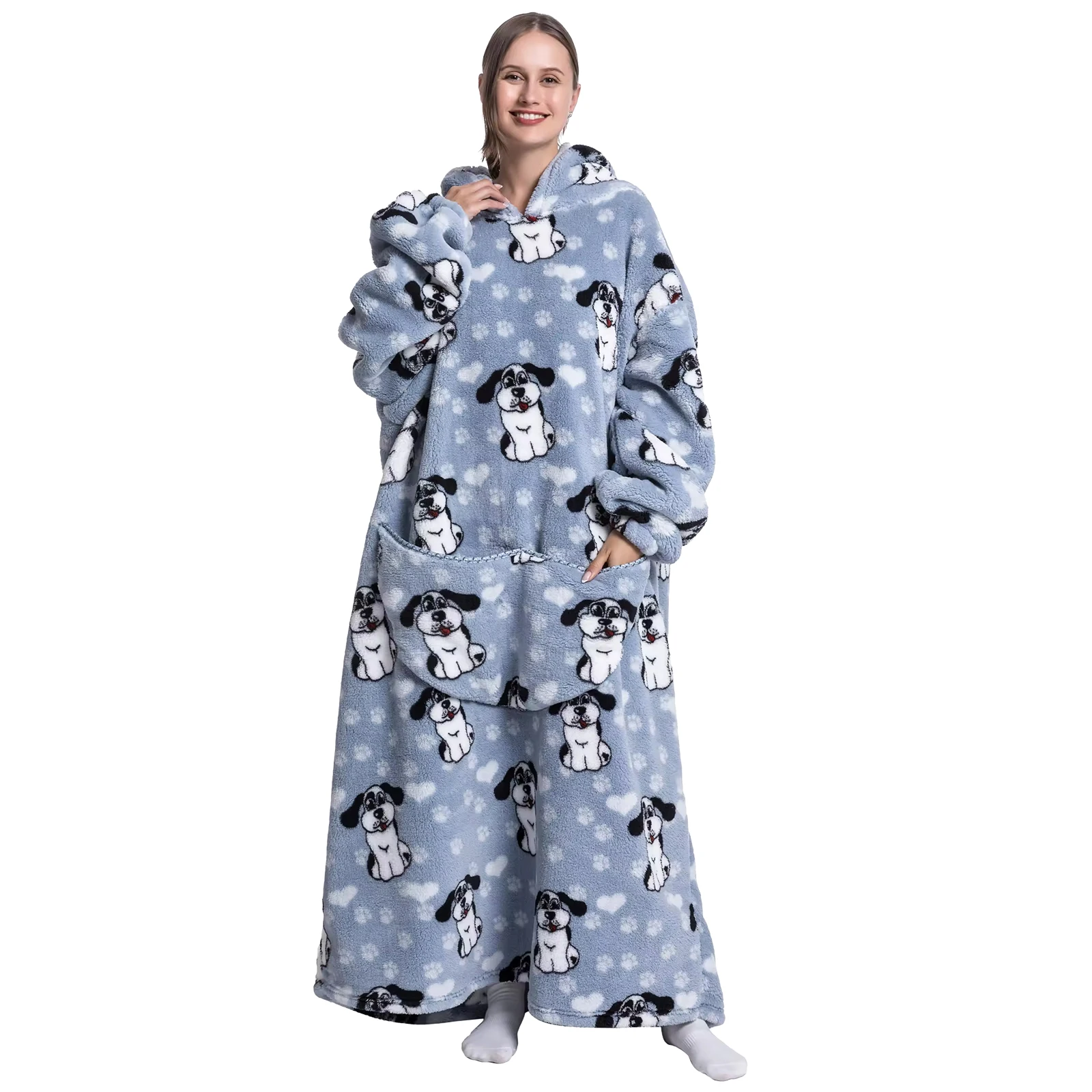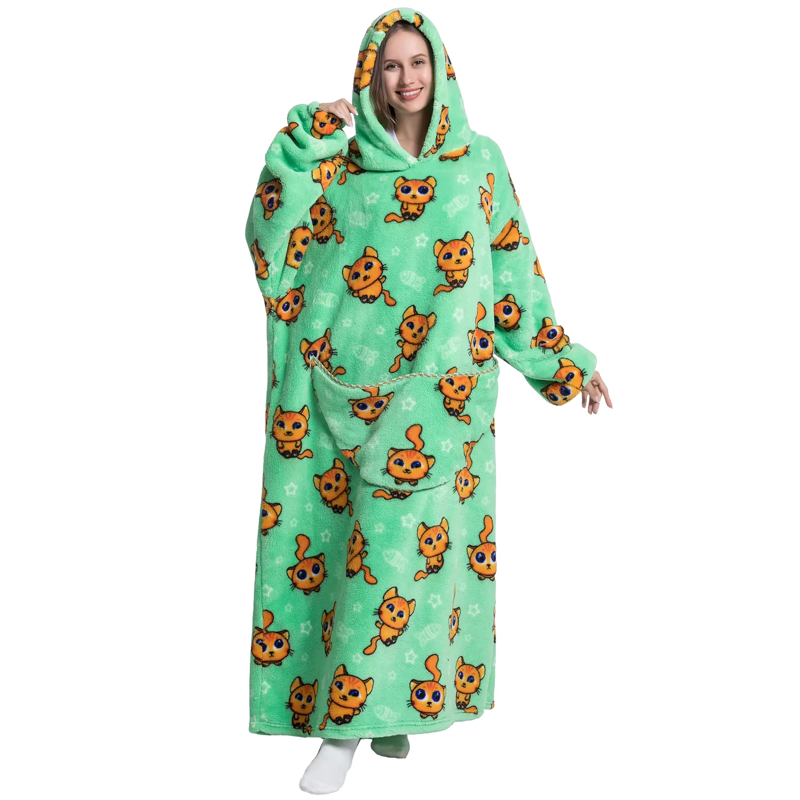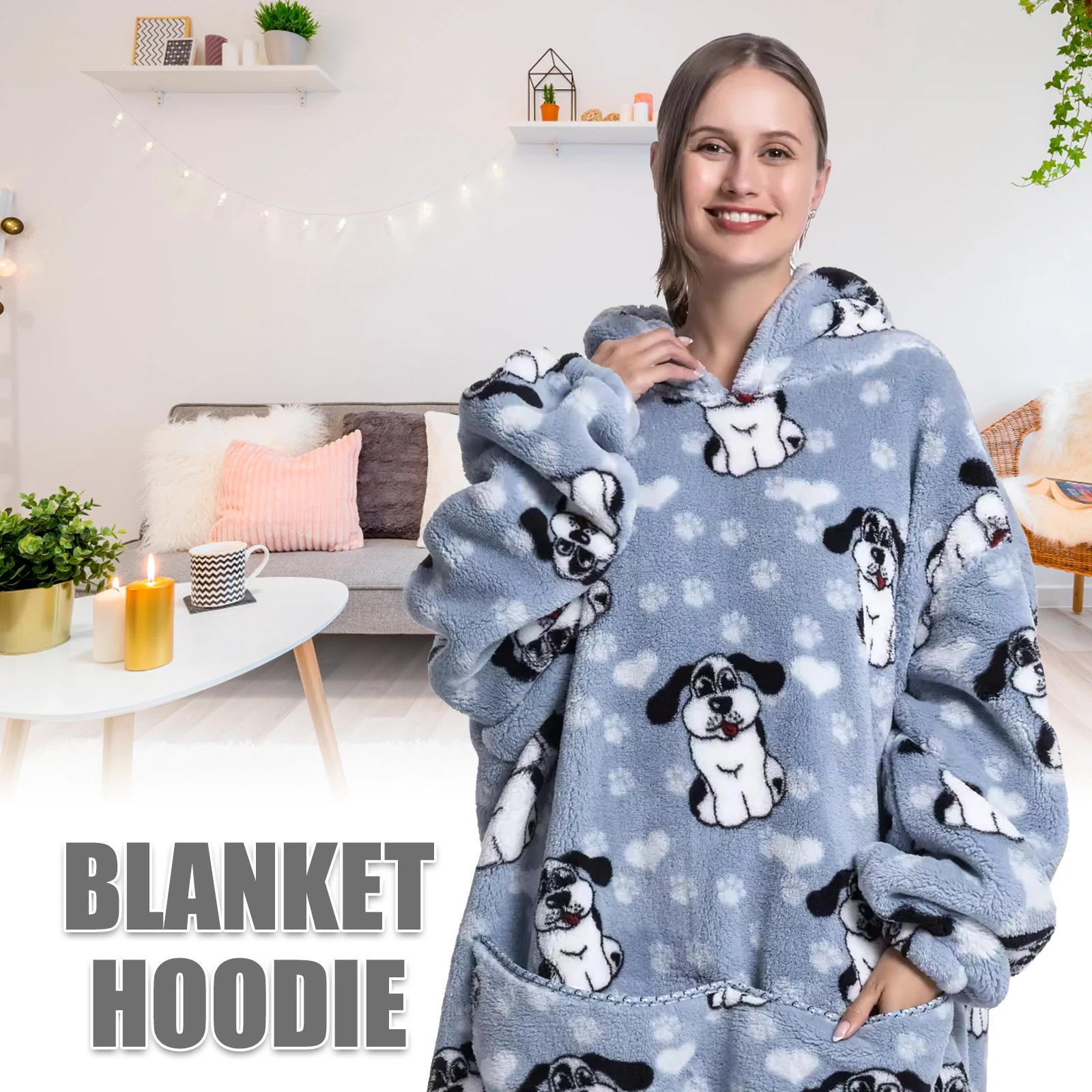 Stay cozy and warm with this oversized wearable hooded blanket sweatshirt, featuring cute cartoon prints. Perfect for men and women, this hooded blanket is great for lounging at home or staying warm on the go. The convenient dropshipping option makes it easy to order and receive your blanket hoodie without any hassle. This unique and practical item combines the comfort of a blanket with the style of a hoodie, making it a must-have for anyone looking to stay warm and stylish during colder months.
