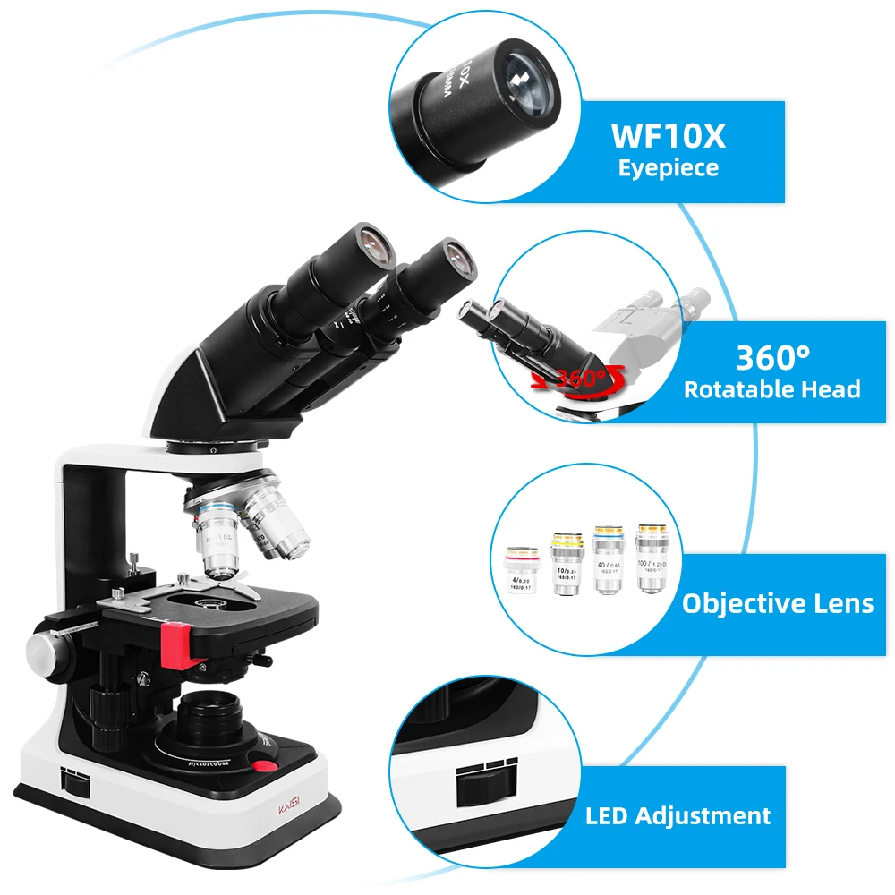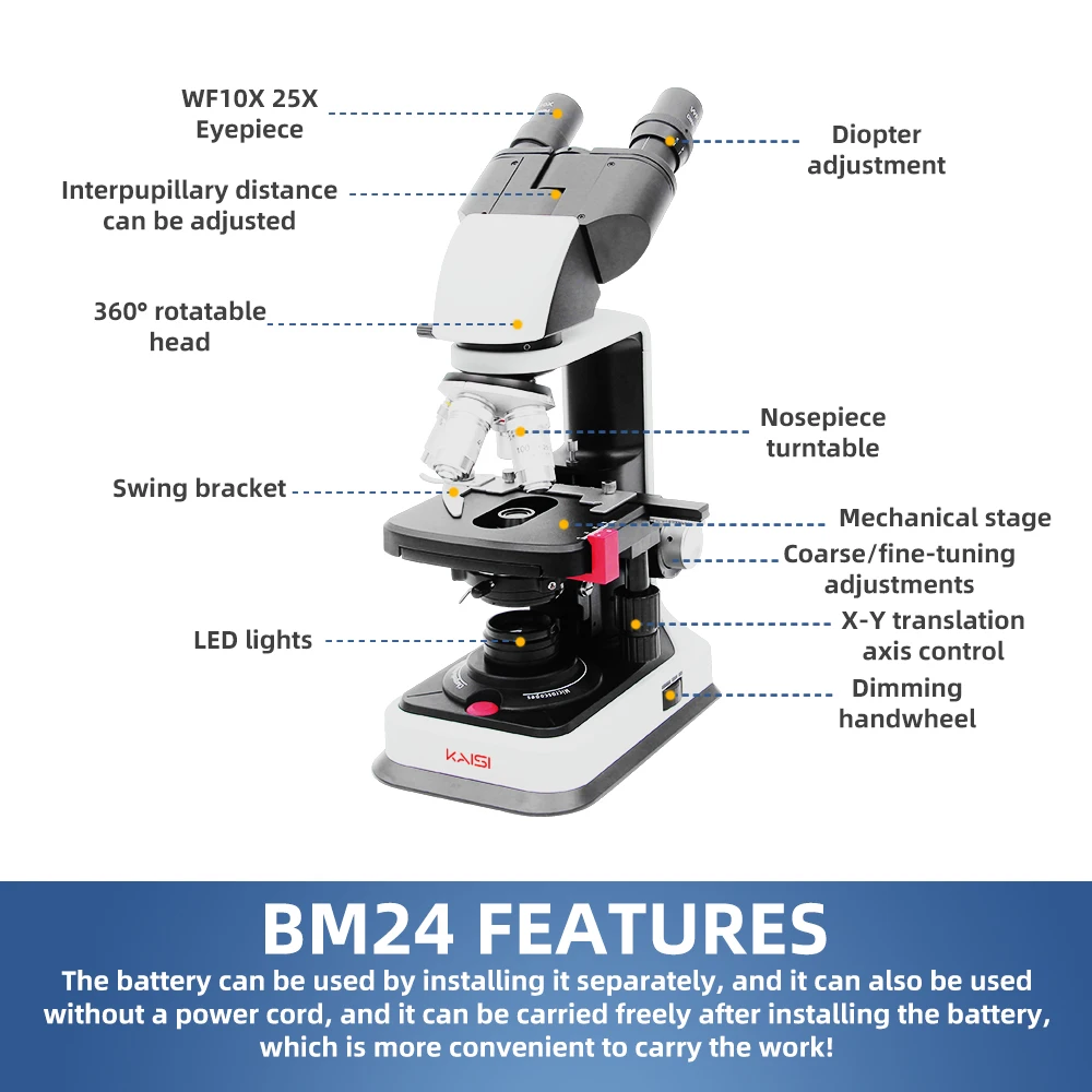 BM24 40X-2500X Biological Microscope Siedentopf Binocular Head Researc…