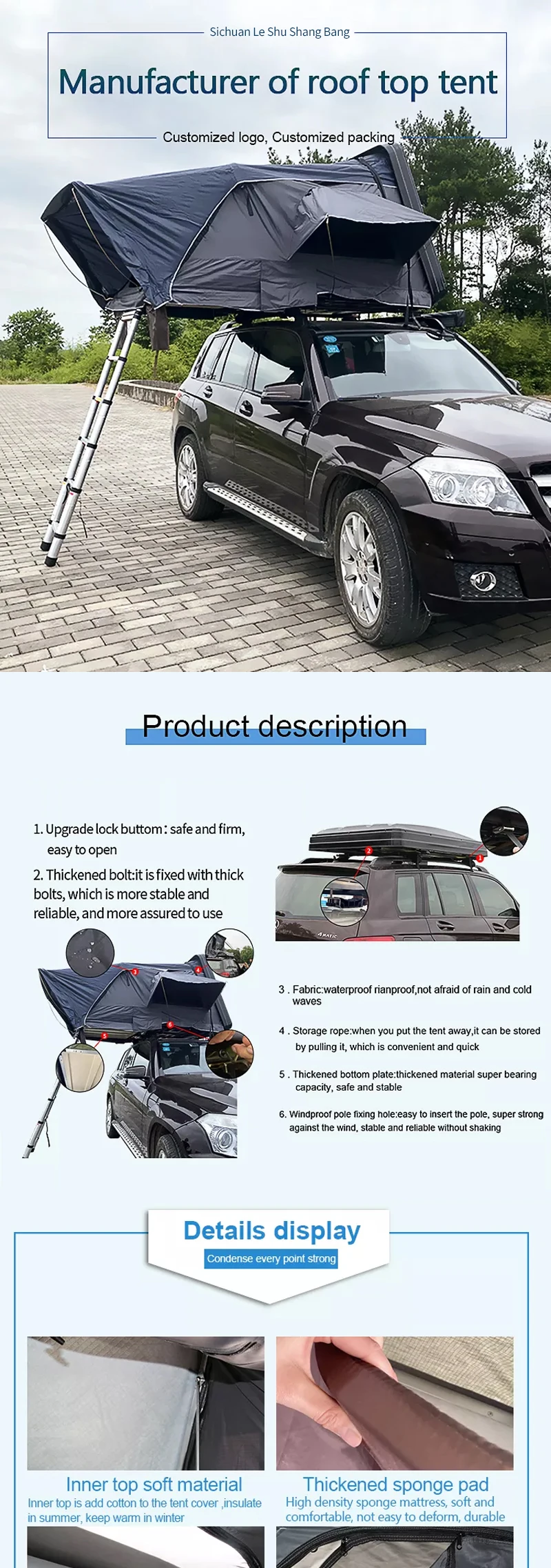 Introducing our durable and reliable Outdoor Waterproof Canvas Hard Shell Rooftop Tent for camper trailers! This innovative tent is a game-changer for outdoor enthusiasts who value comfort and convenience while on the road.