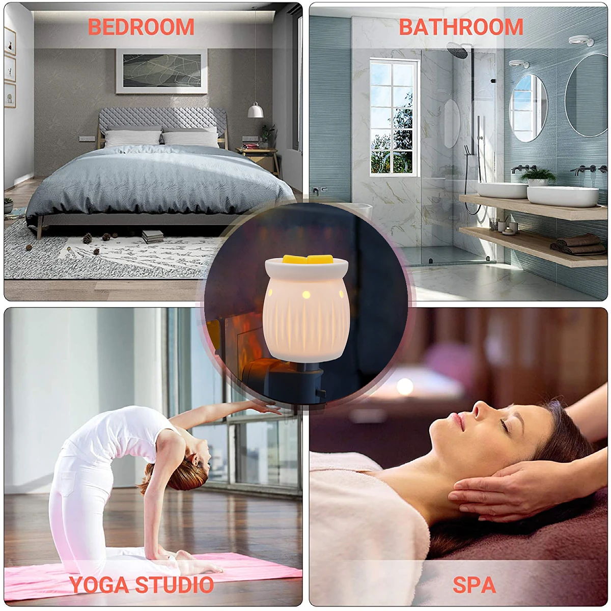 ✨Relaxing Night Light – If you’re looking for a wax warmers for scents which can work as a light source,you can definitely consider this. It is pretty versatile.Our fragrance warmer are designed to warm scented oils and wax creating the glow and ambiance of a burning candle while releasing the fragrance into the home.Warming Bulb illuminates warmer creating a relaxing mood. With the help of the ceramic oil burners, it will become easier for you to create a romantic ambiance in your home.