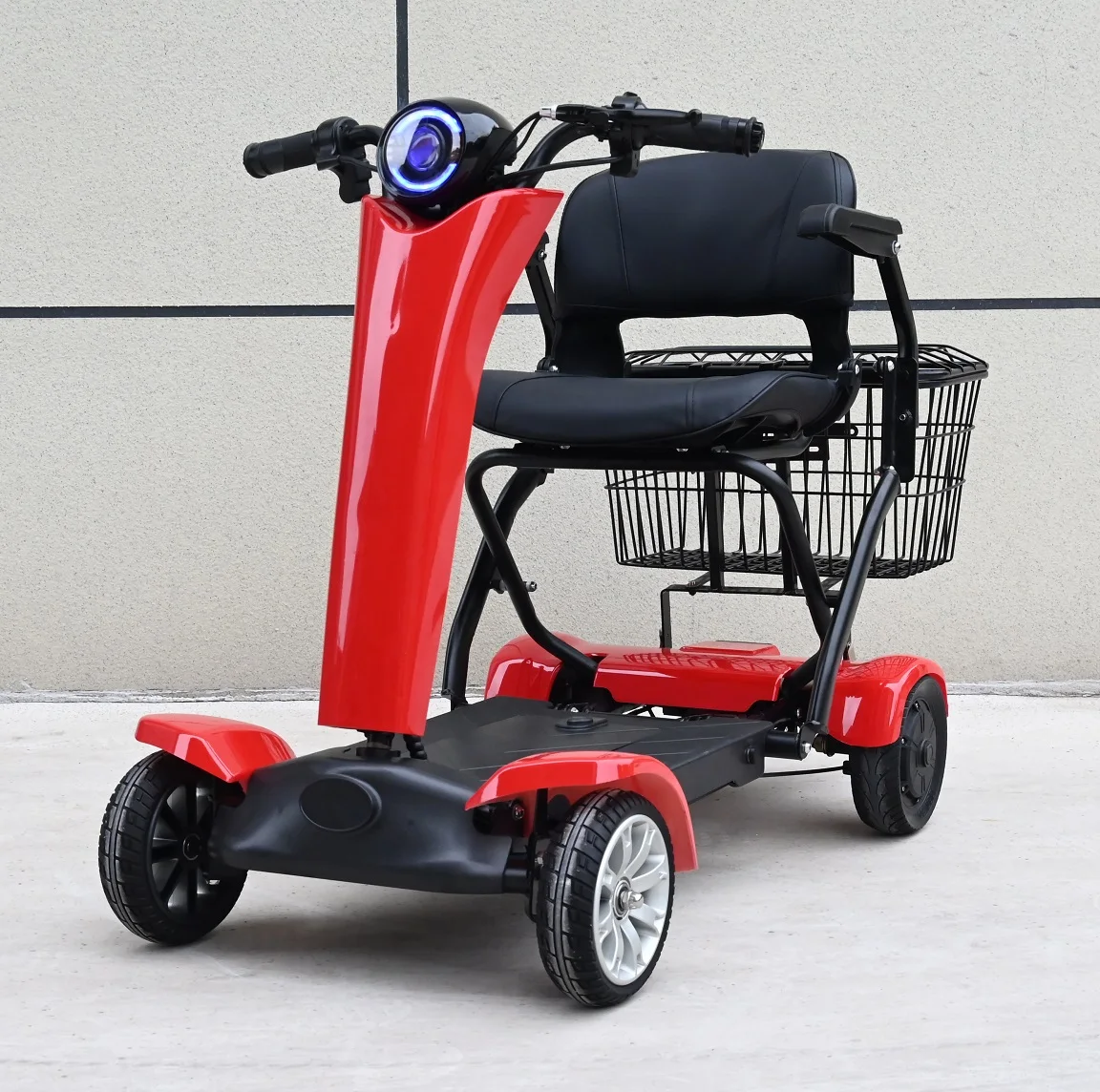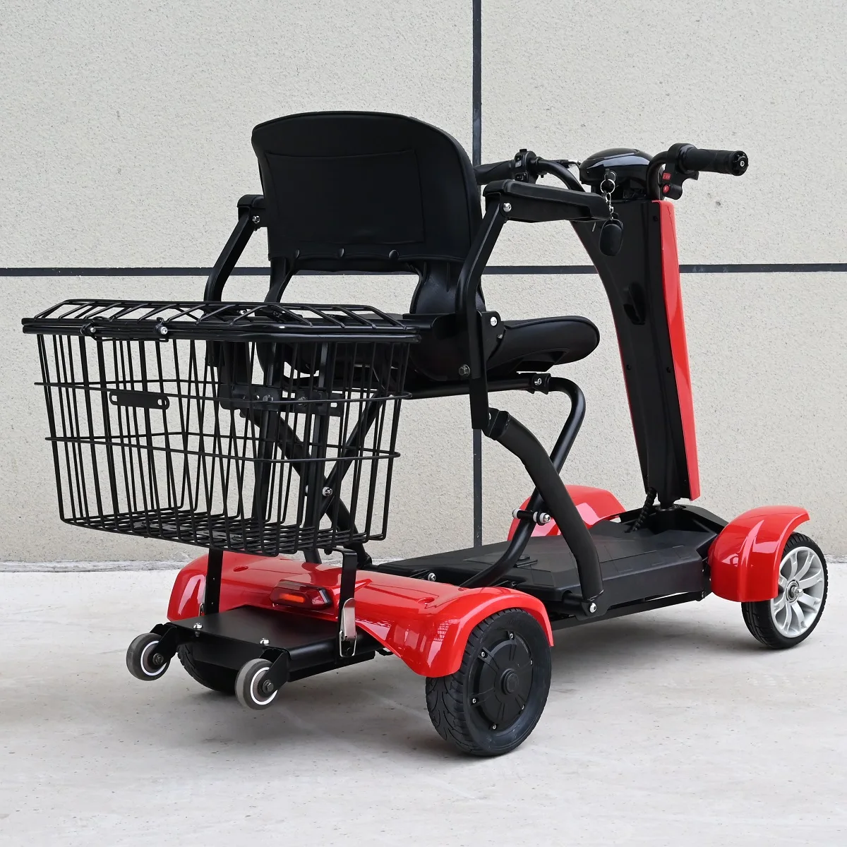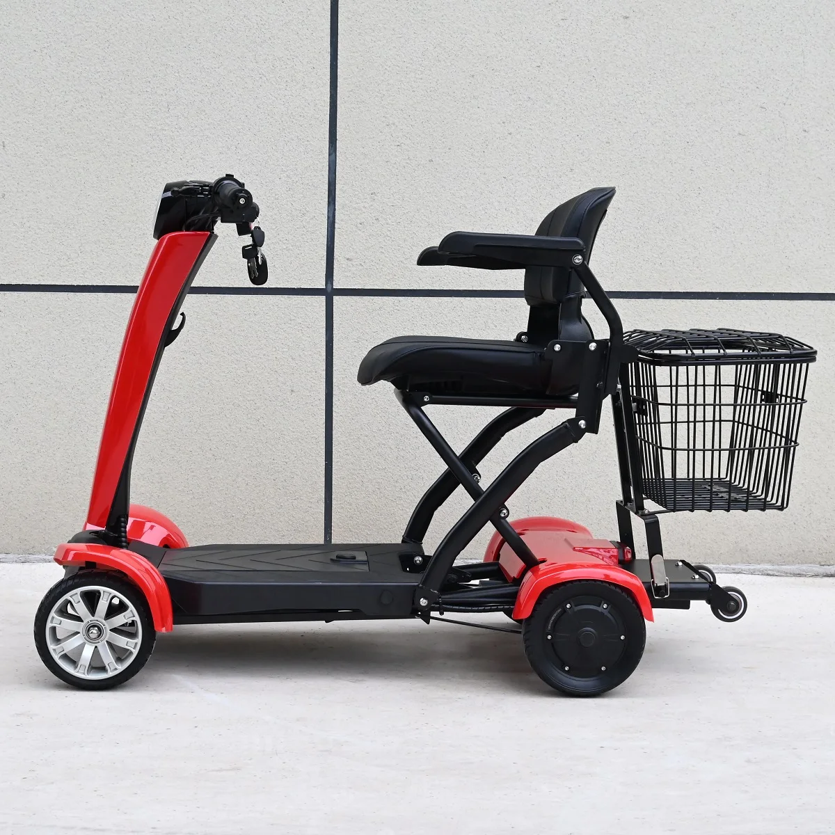 This content describes a cheap, long-range mini mobility scooter designed for elderly and handicapped individuals. The scooter features four wheels for stability, automatic folding capabilities for easy storage, and a basket for carrying personal items. It is electrically powered, providing a convenient and environmentally friendly mode of transportation. This scooter is ideal for individuals looking for a compact and affordable mobility solution that offers long-range capabilities.