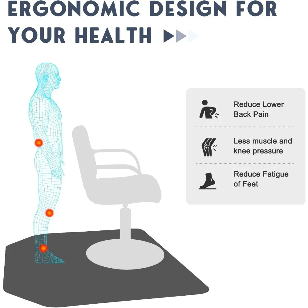 - 1/2” Thick ♥ Not too thick, just enough. Cushioned mat under feet to relieve pressure on feet and back. Easy for beauty cart to move around.